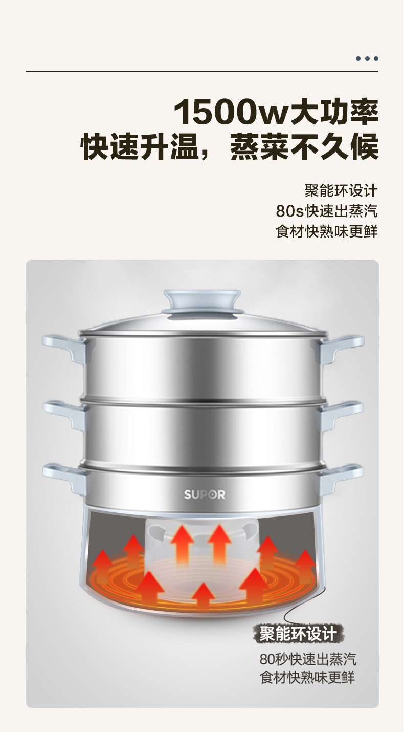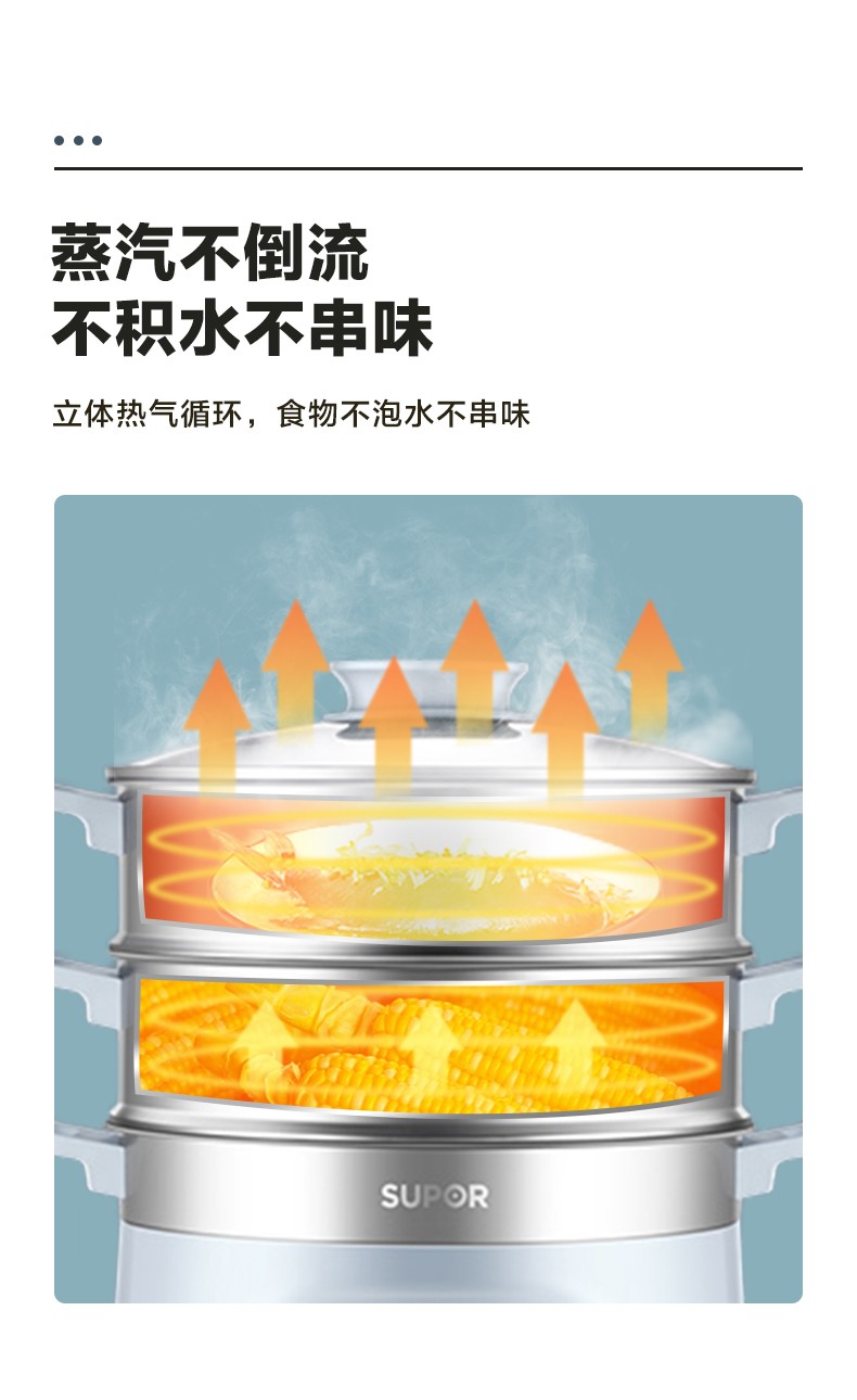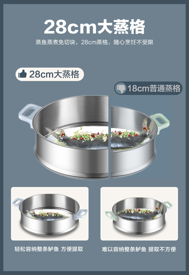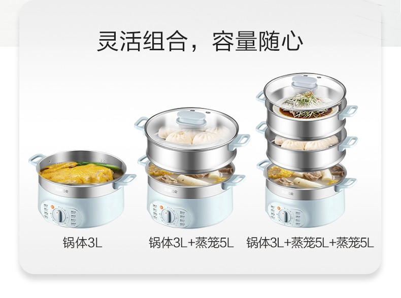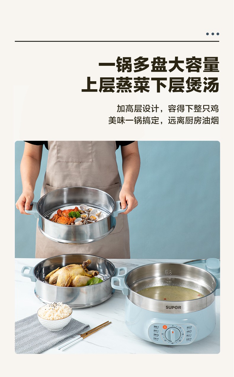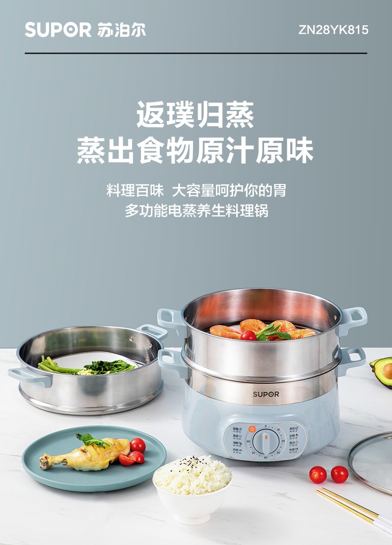 商品名称:苏泊尔 SUPOR多用途锅电蒸锅多功能家用三层13L大容量 可定时 ZN28YK815 浅蓝色