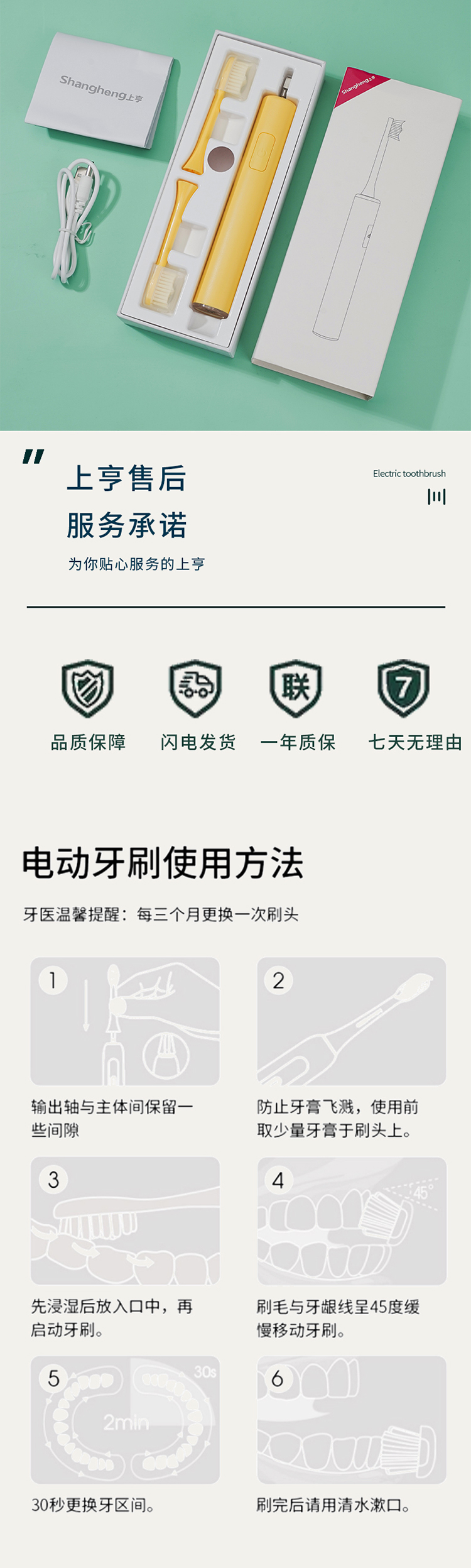 商品名称:上亨(shangheng)电动牙刷 声波震动磁悬浮马达美白电动牙刷 靓沁粉 SHZH-009 黄色