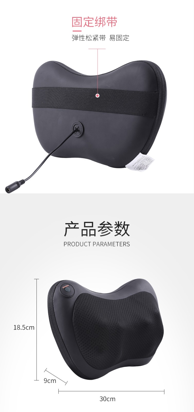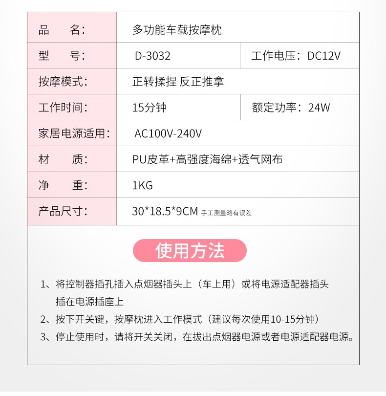 商品名称:爱车屋车载多用按摩枕D-3032(单位:个) 黑色