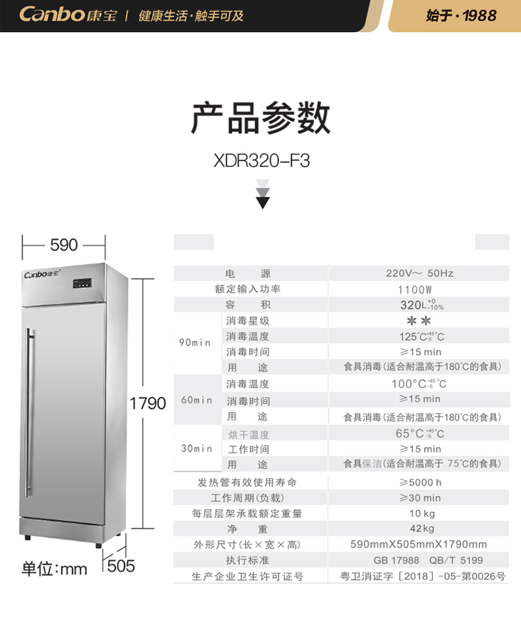 商品名称:康宝(Canbo)消毒柜 立式商用 消毒碗柜 酒店企业餐厅高温餐具消毒碗柜XDR320-F3(单位:台)) 银色