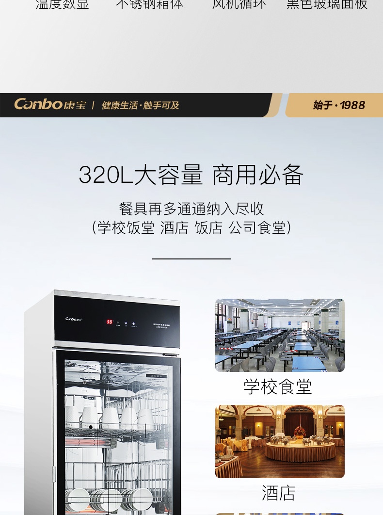 商品名称:康康宝(Canbo)消毒柜 商用家用温食具中温密胺餐具烘干 XDR320-G4(单位:台) 银色
