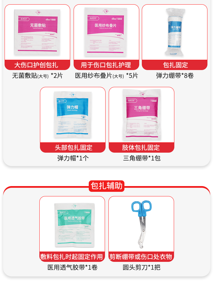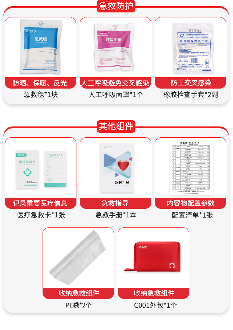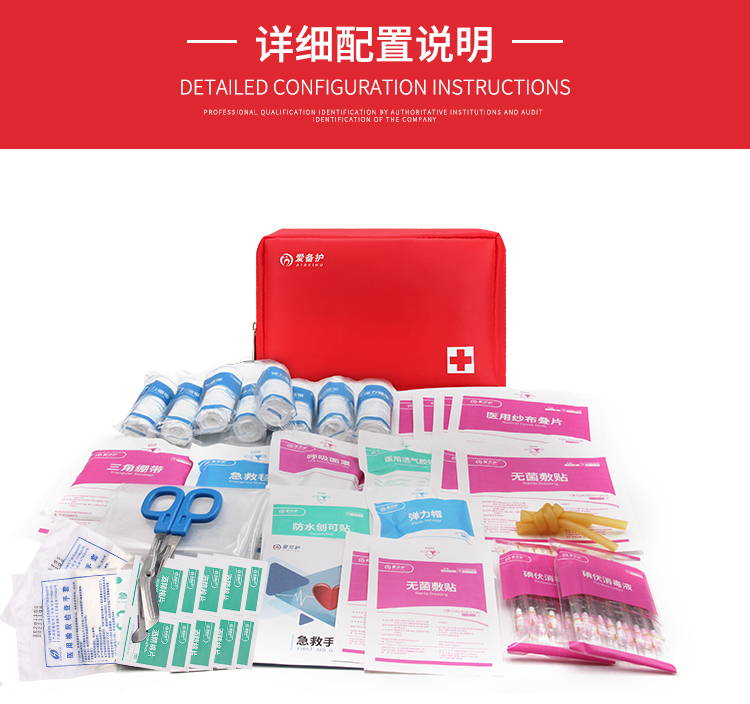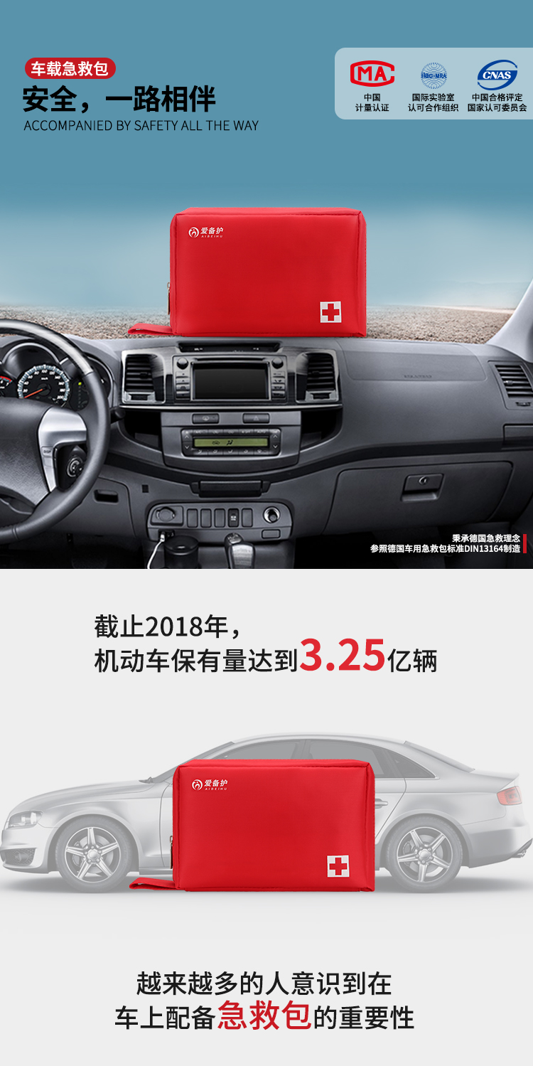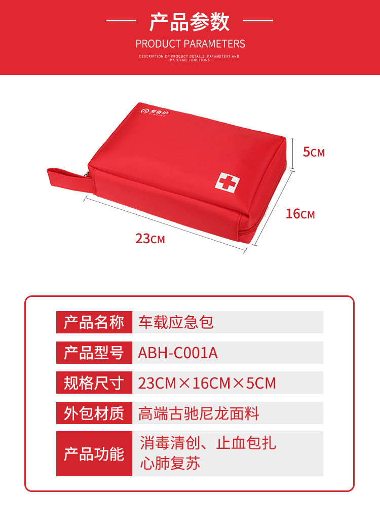 商品名称:爱备护 车载应急包 车载医疗型 ABH-C001A 红色 高端古驰尼龙面料 含20种72件急救用品 红色