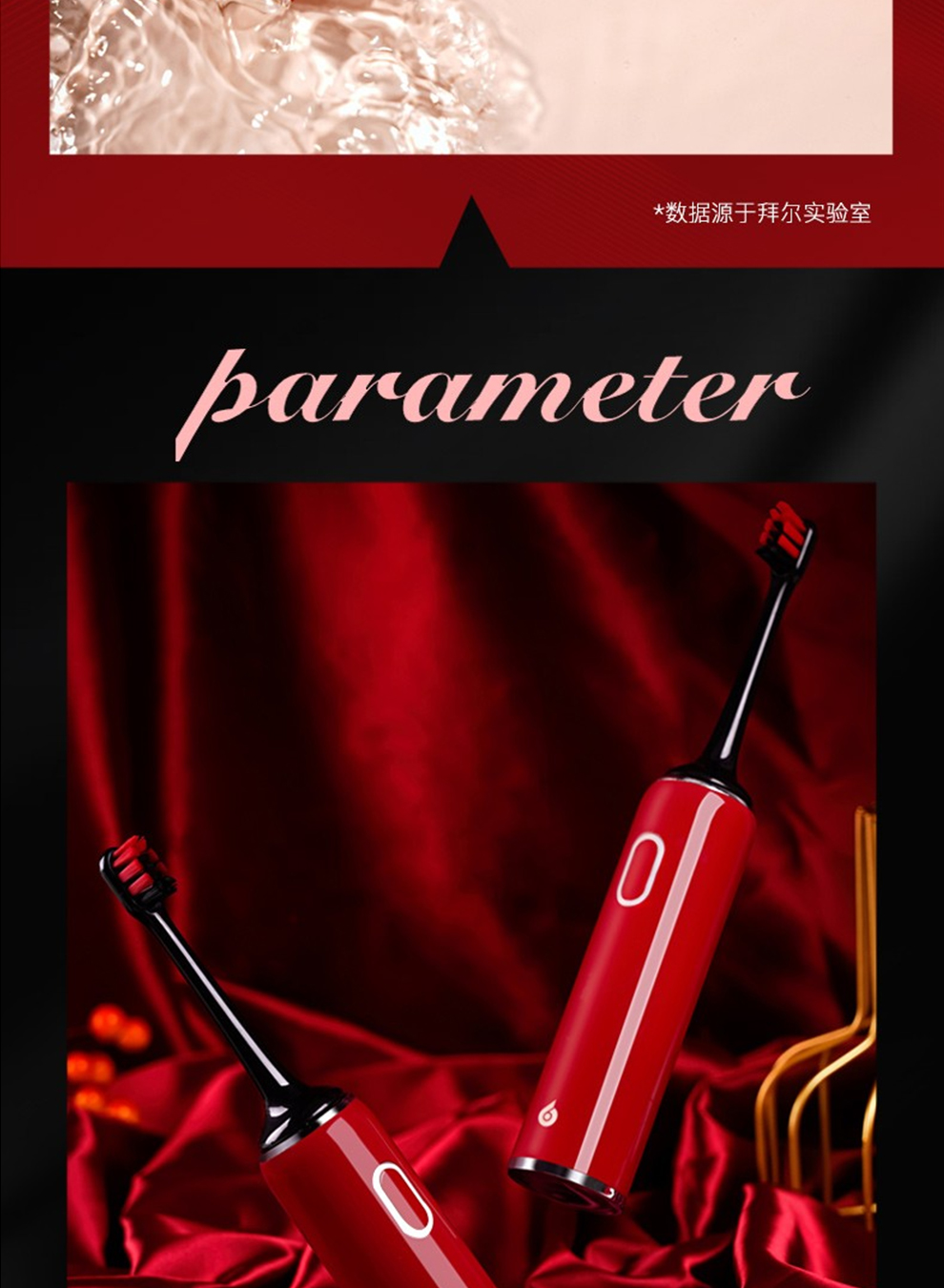 商品名称:拜尔小白电动牙刷001 (主机+4刷头+按摩刷头+充电线+充电底座+洗涮杯) 红色