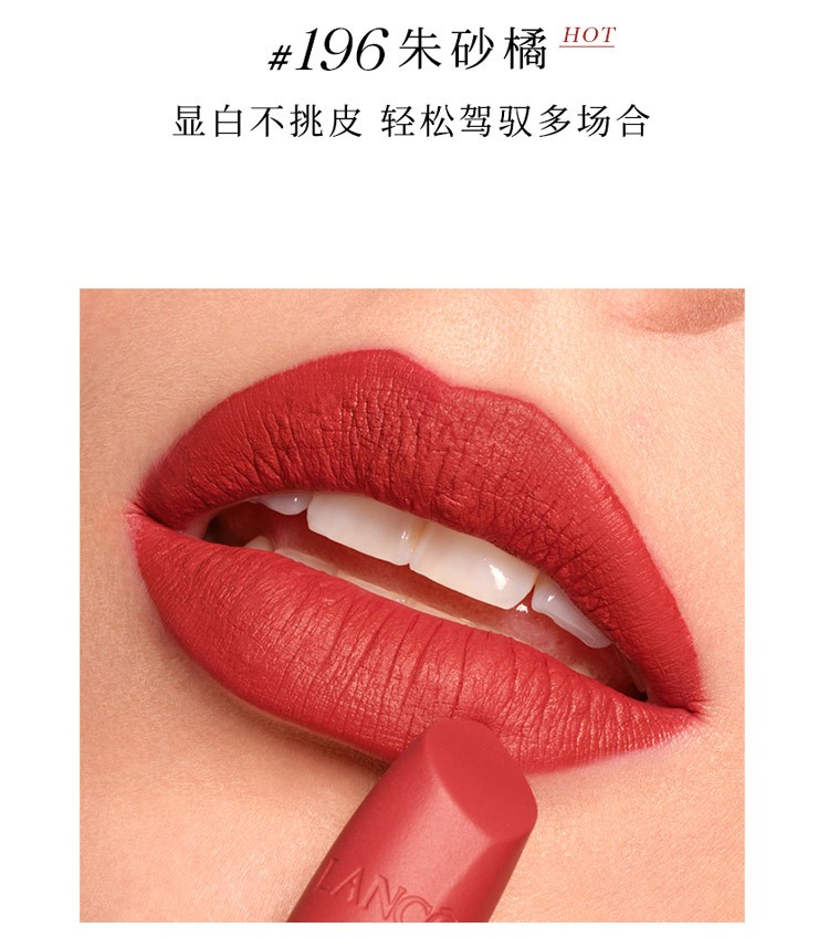 商品名称:兰蔻全新菁纯丝绒雾面唇膏196# 3.4g 朱砂橘