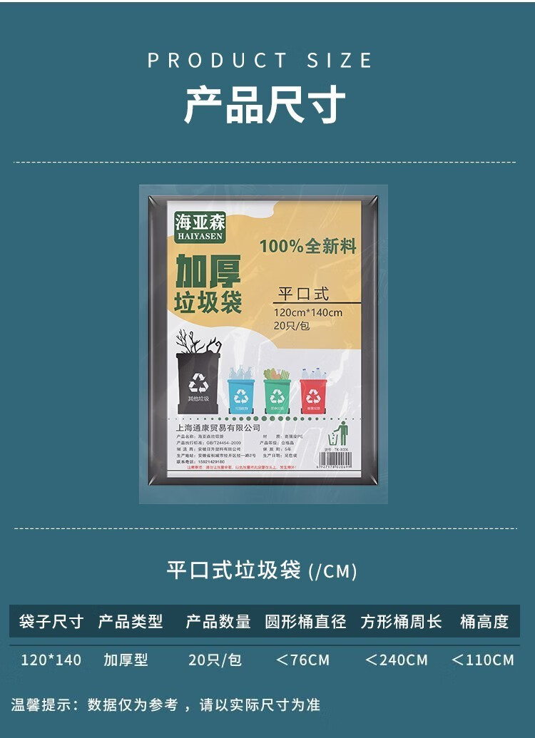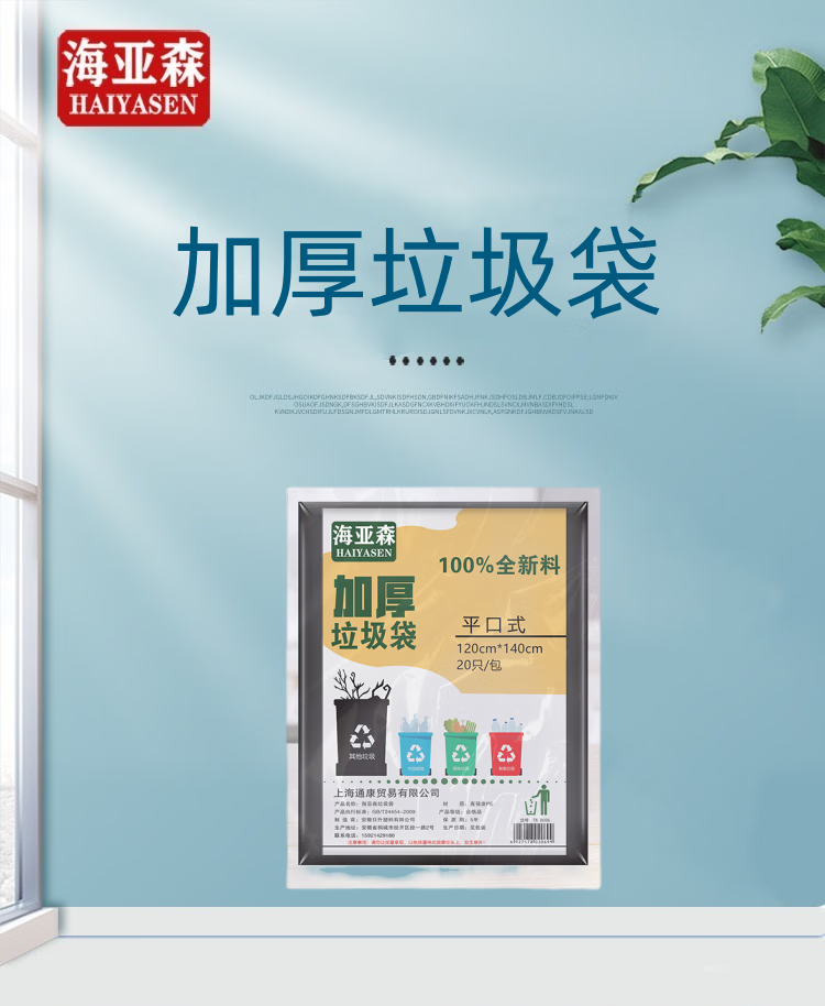 商品名称:海亚森(HAIYASEN)TK-8010 120cm*140cm加厚型垃圾20只/包 黑色