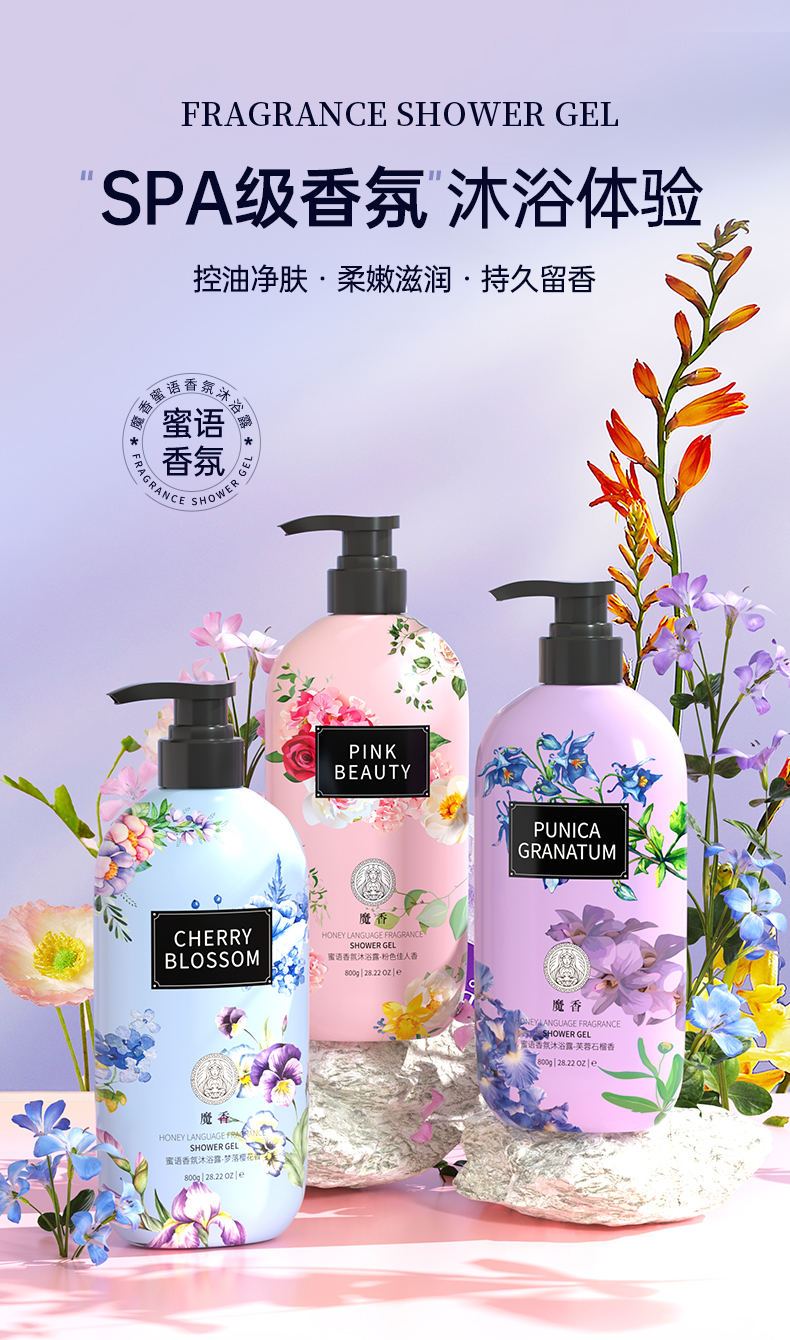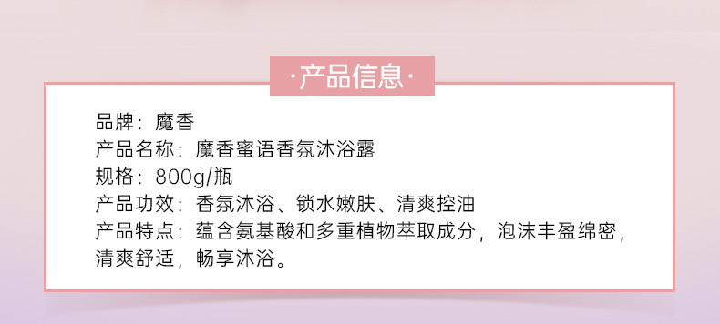 商品名称:魔香蜜语香氛沐浴露-粉色佳人香800g香味持久留香 G10036粉色佳人香800g