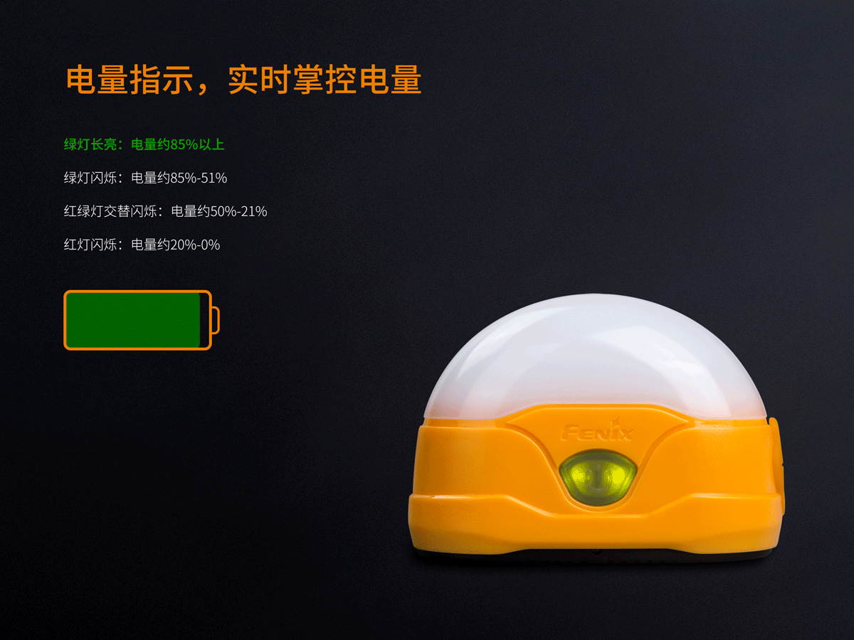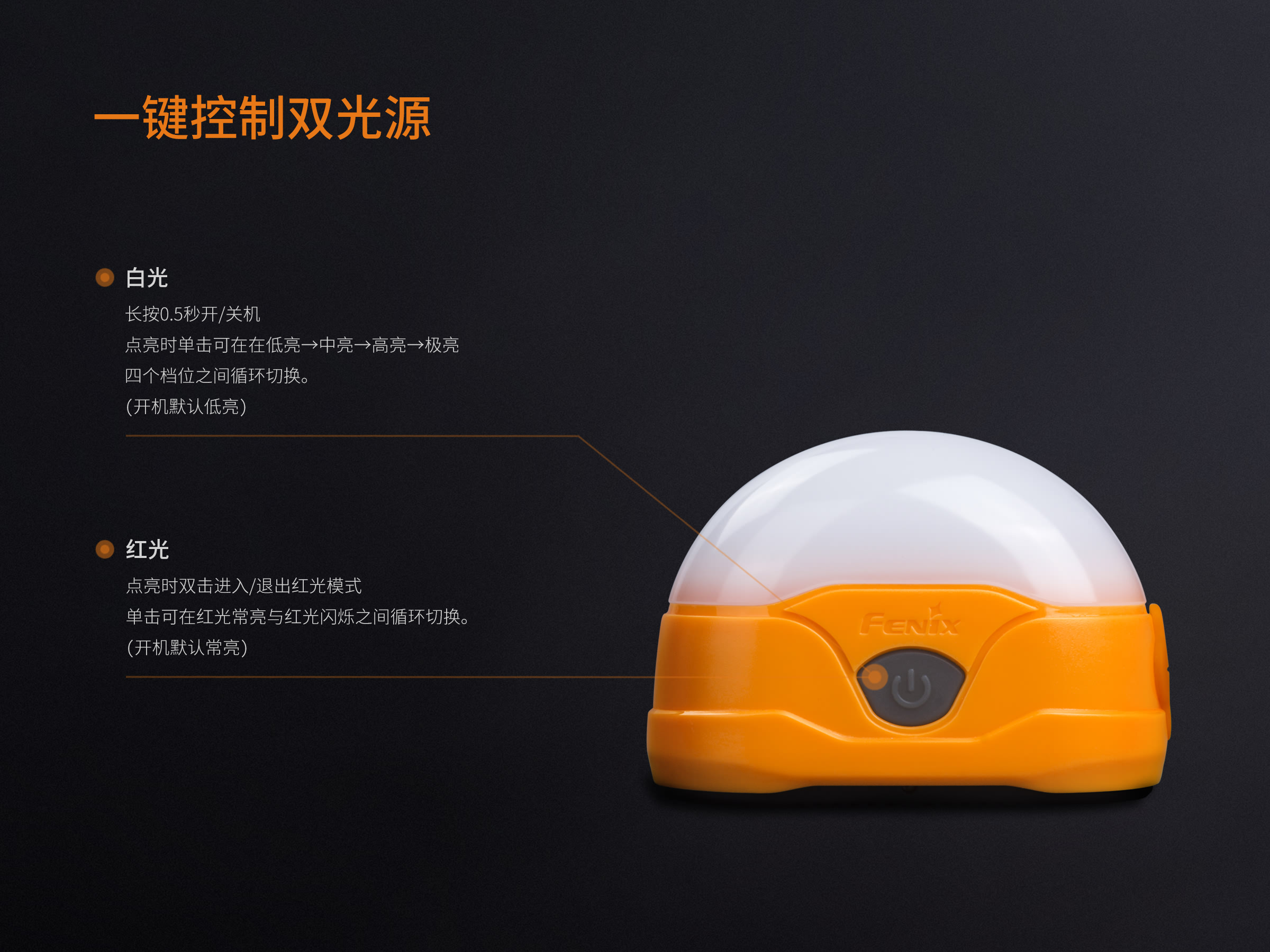 商品名称:Fenix CL20R便携高性能直充露营灯300流明 橙色