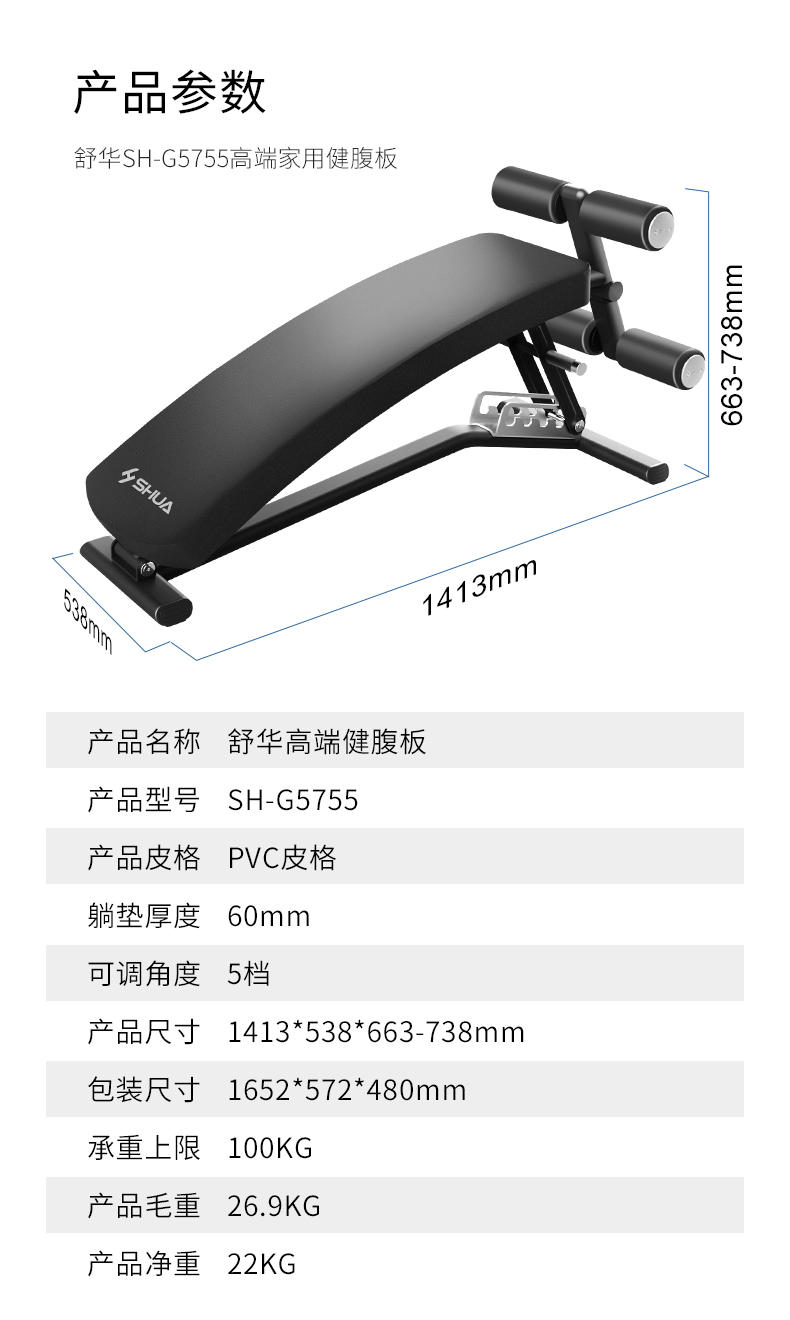 商品名称:舒华(SHUA)仰卧起坐健身器材仰卧板家用辅助器腹肌运动健身锻炼器材收腹机腹肌板 SH-G5755高端健腹板 台 黑色