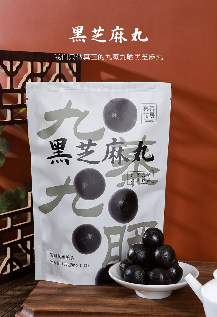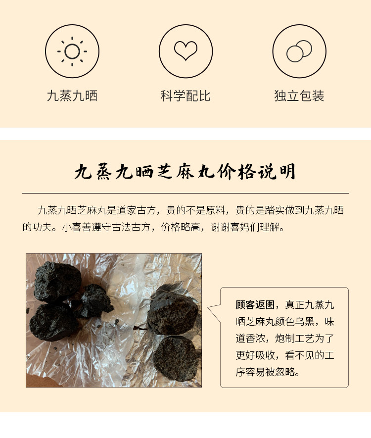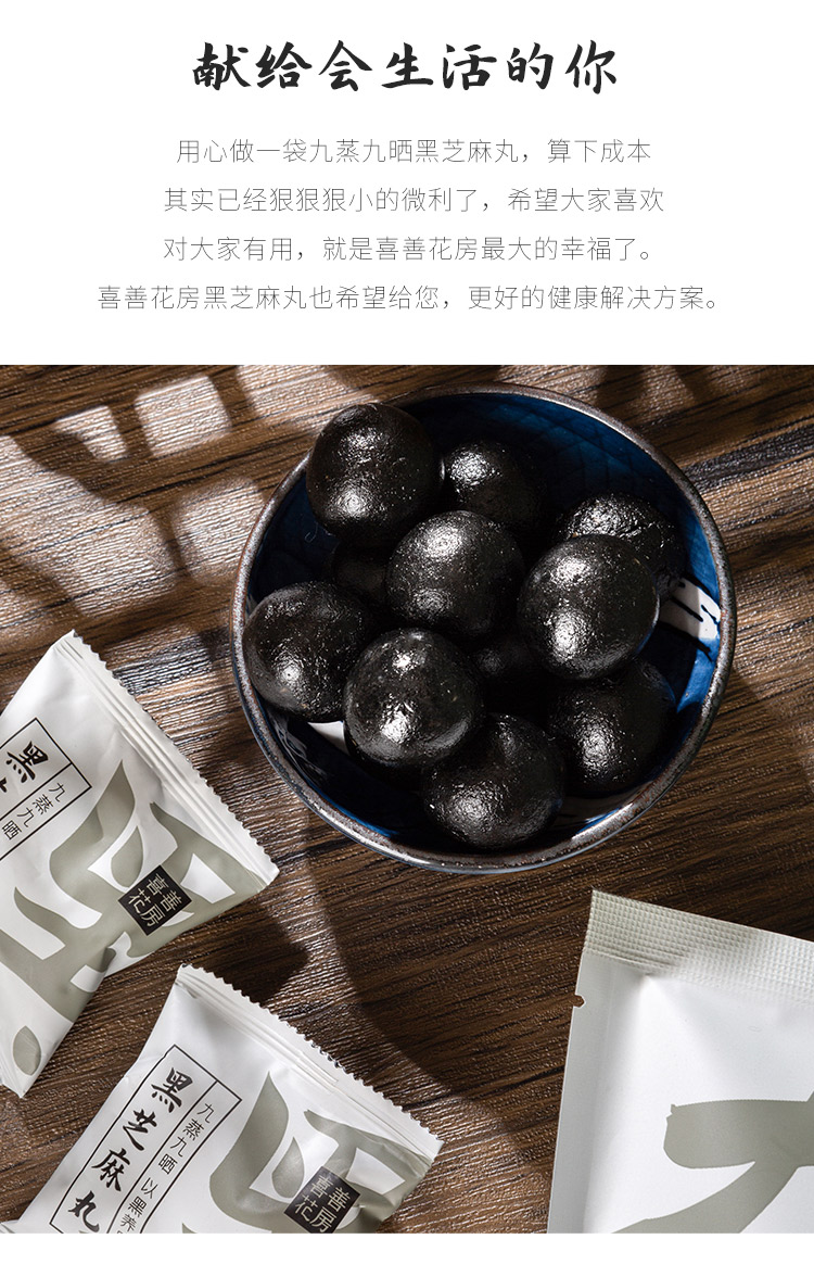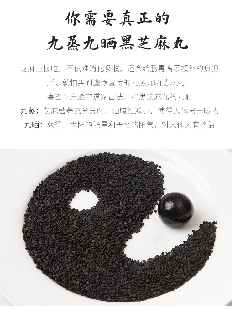 商品名称:喜善花房黑芝麻丸九蒸九晒黑芝麻丸手工制作乌黑芝麻球丸孕妇可食喜善花房黑芝麻丸120g/袋 深空流光