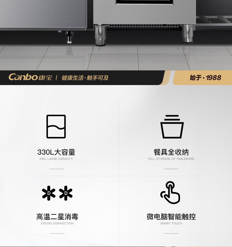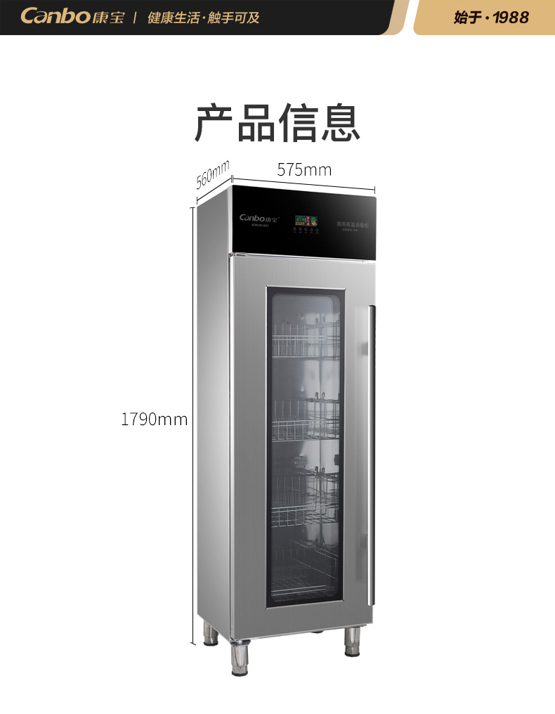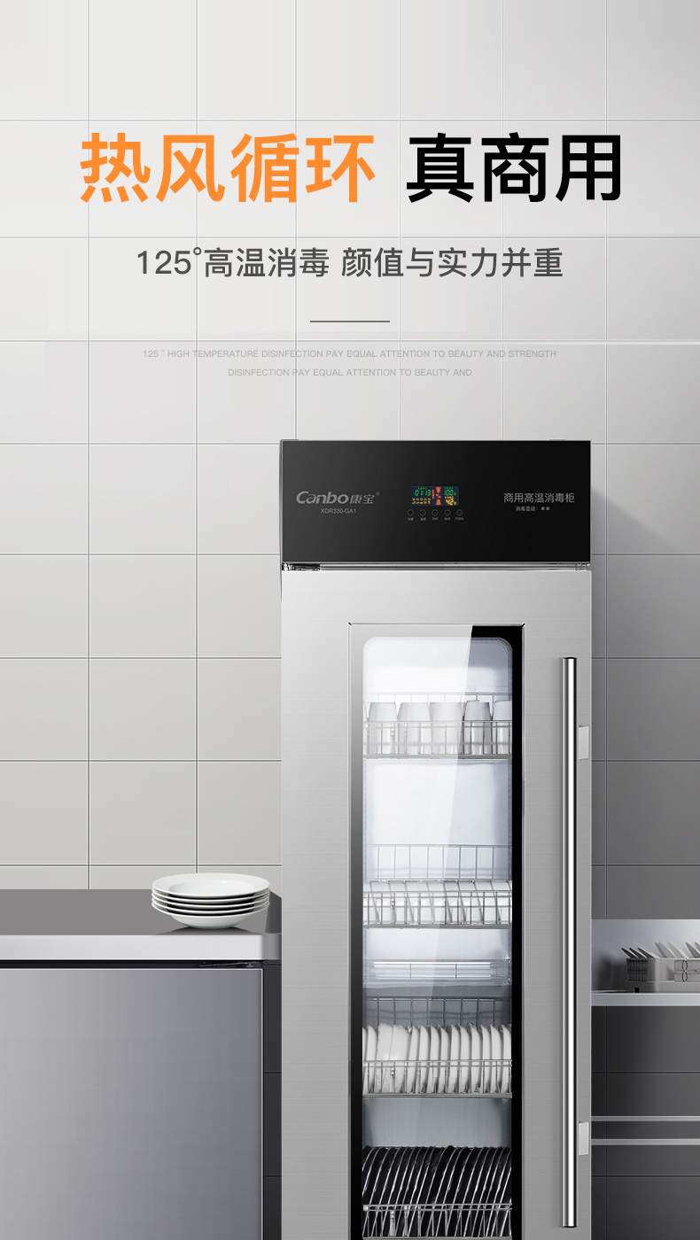 商品名称:康宝(Canbo)消毒柜 商用立式 消毒碗柜 商用大容量 厨房消毒柜 高温二星级碗柜 XDR330-GA1 不锈钢色