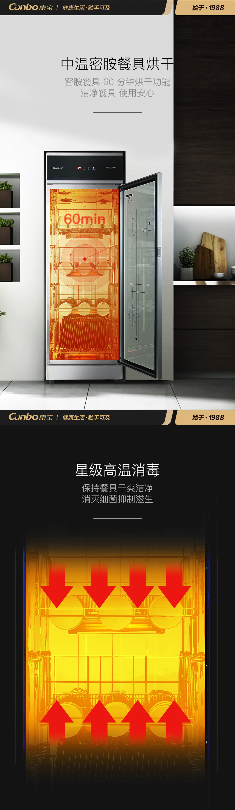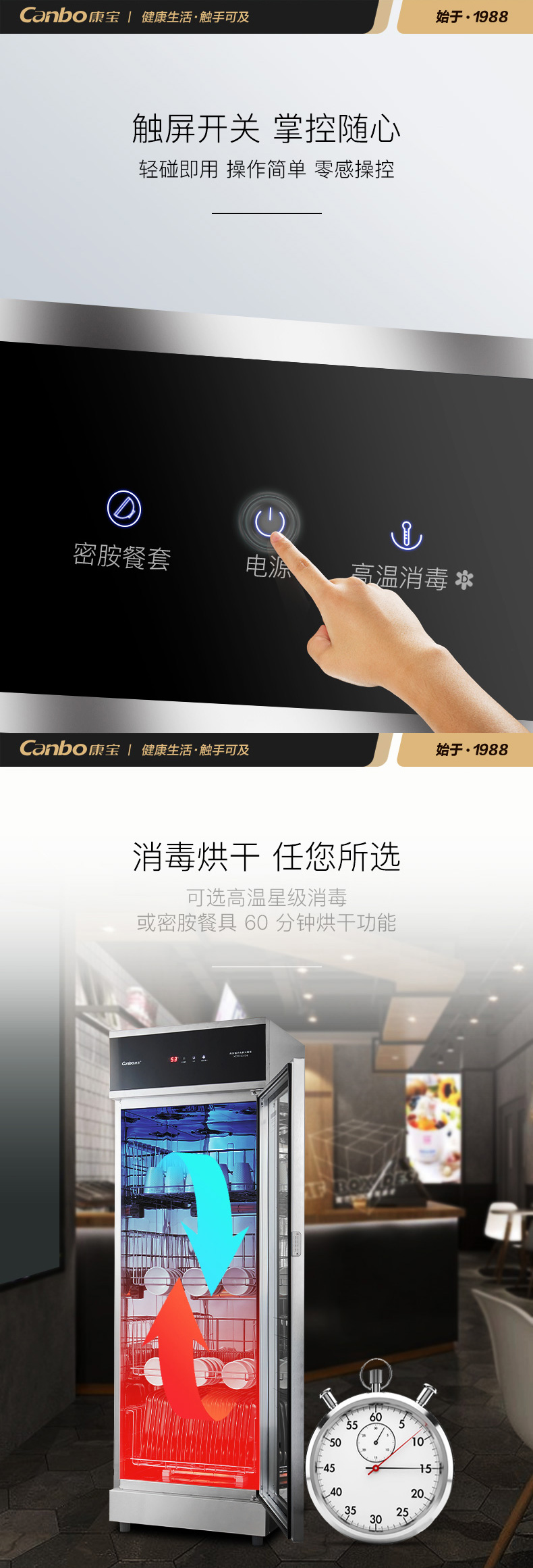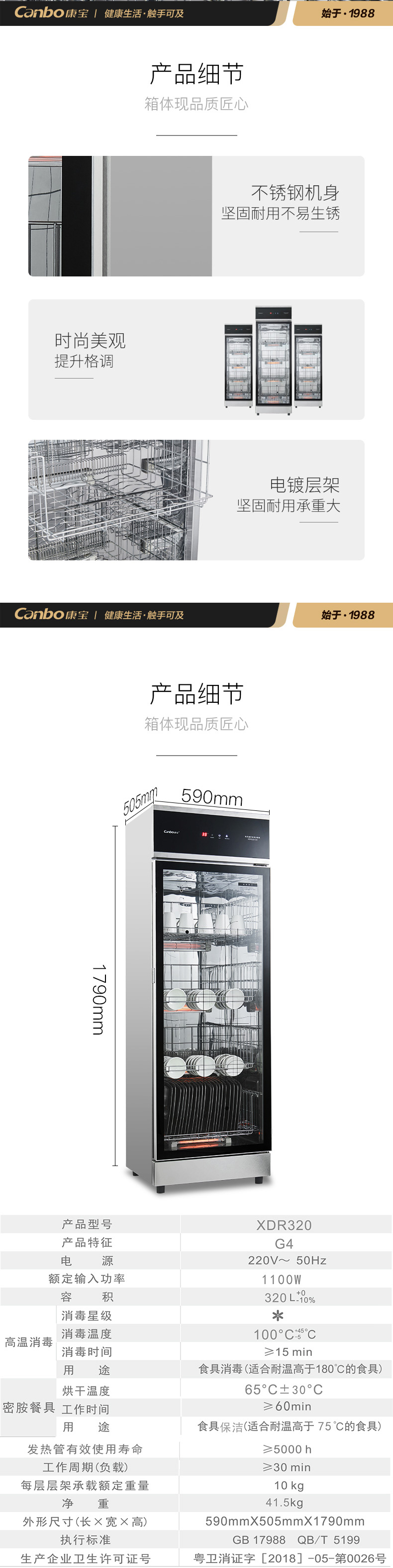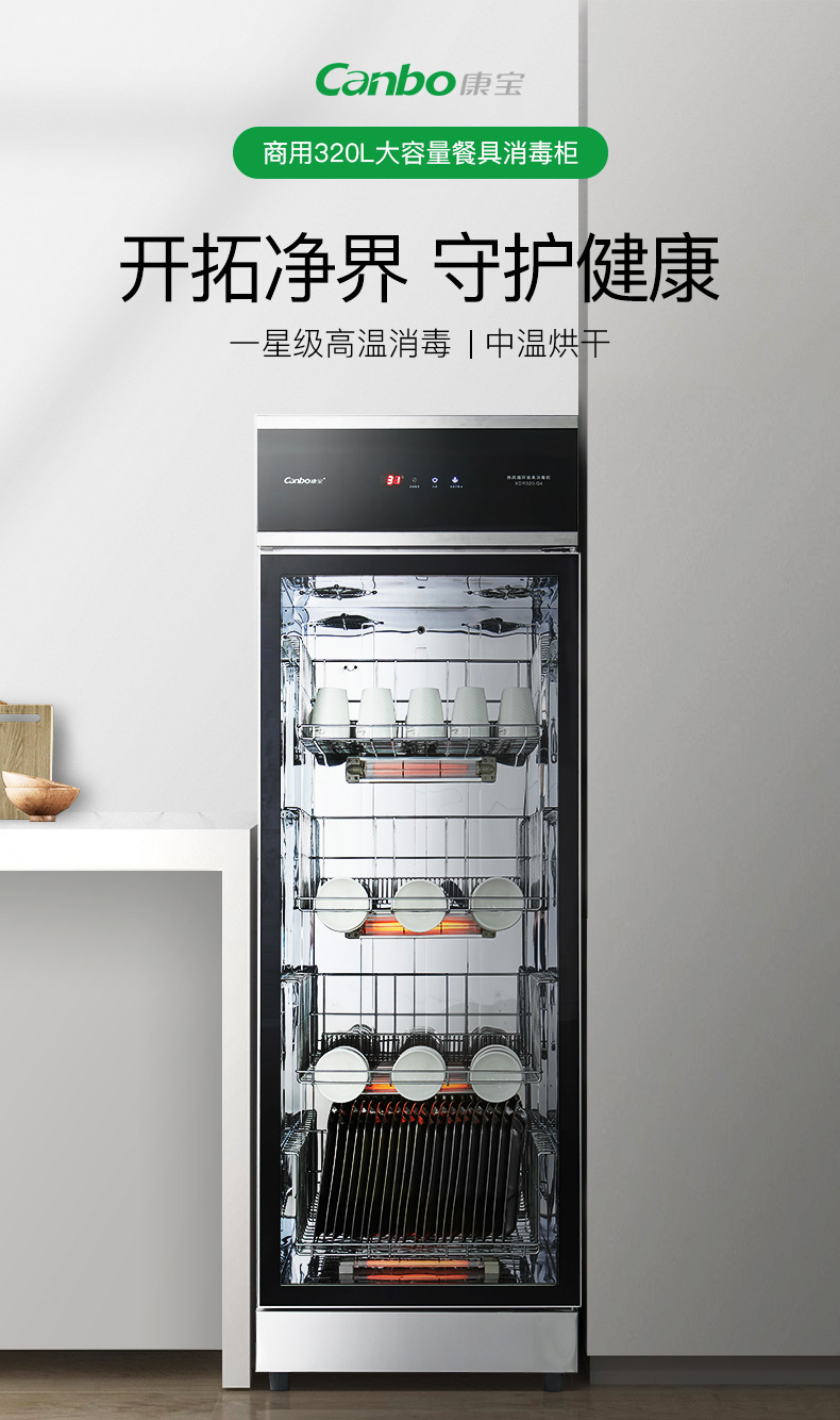 商品名称:康宝(Canbo)消毒柜 商用家用温食具消毒柜 中温密胺餐具烘干 XDR320-G4 黑色
