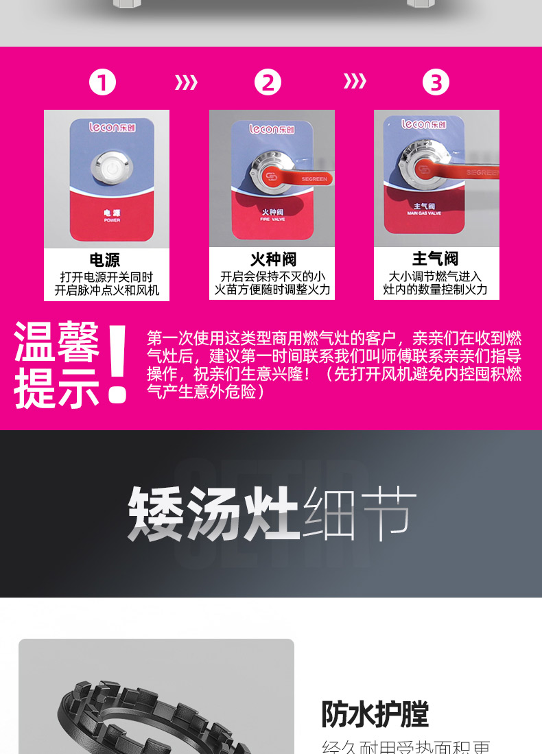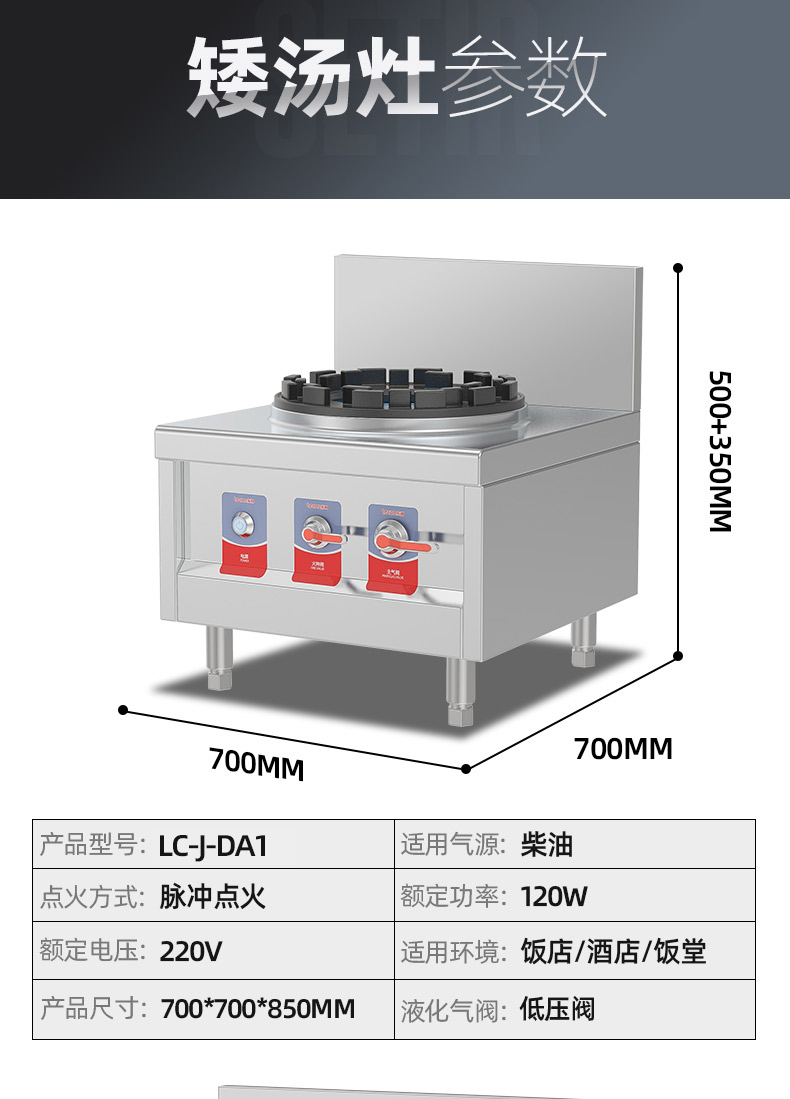 商品名称:乐创(Lecon)商用燃气双头低背矮汤炉 柴油可选酒店厨房企业燃气灶 LC-J-DA2 不锈钢色