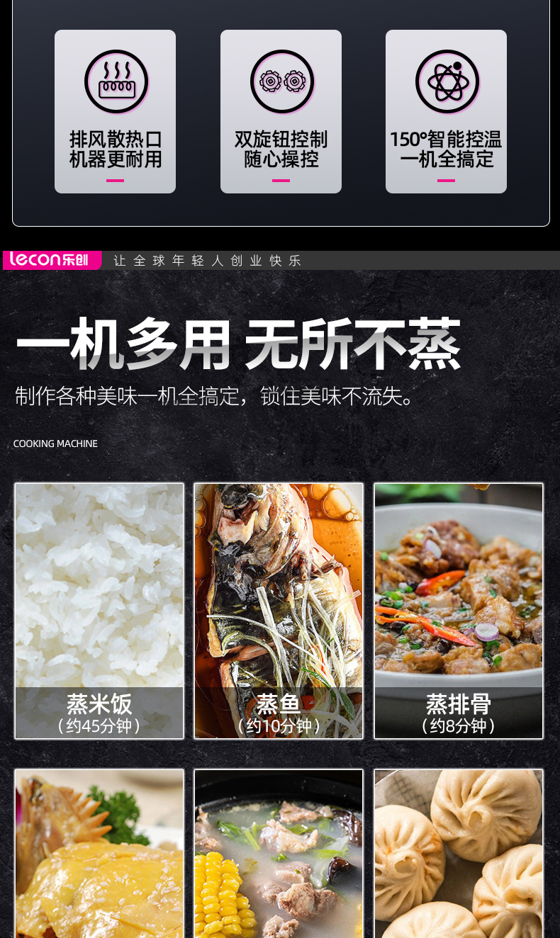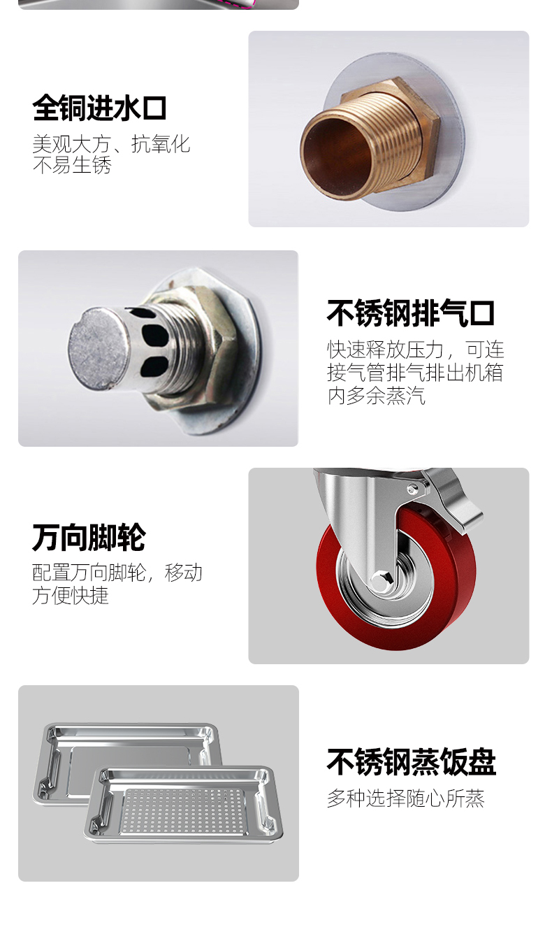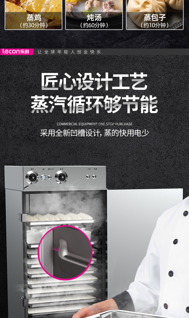 商品名称:乐创(lecon) 商用蒸饭柜 12盘普通机械款大型蒸饭车 LC-J-ZC12 不锈钢色