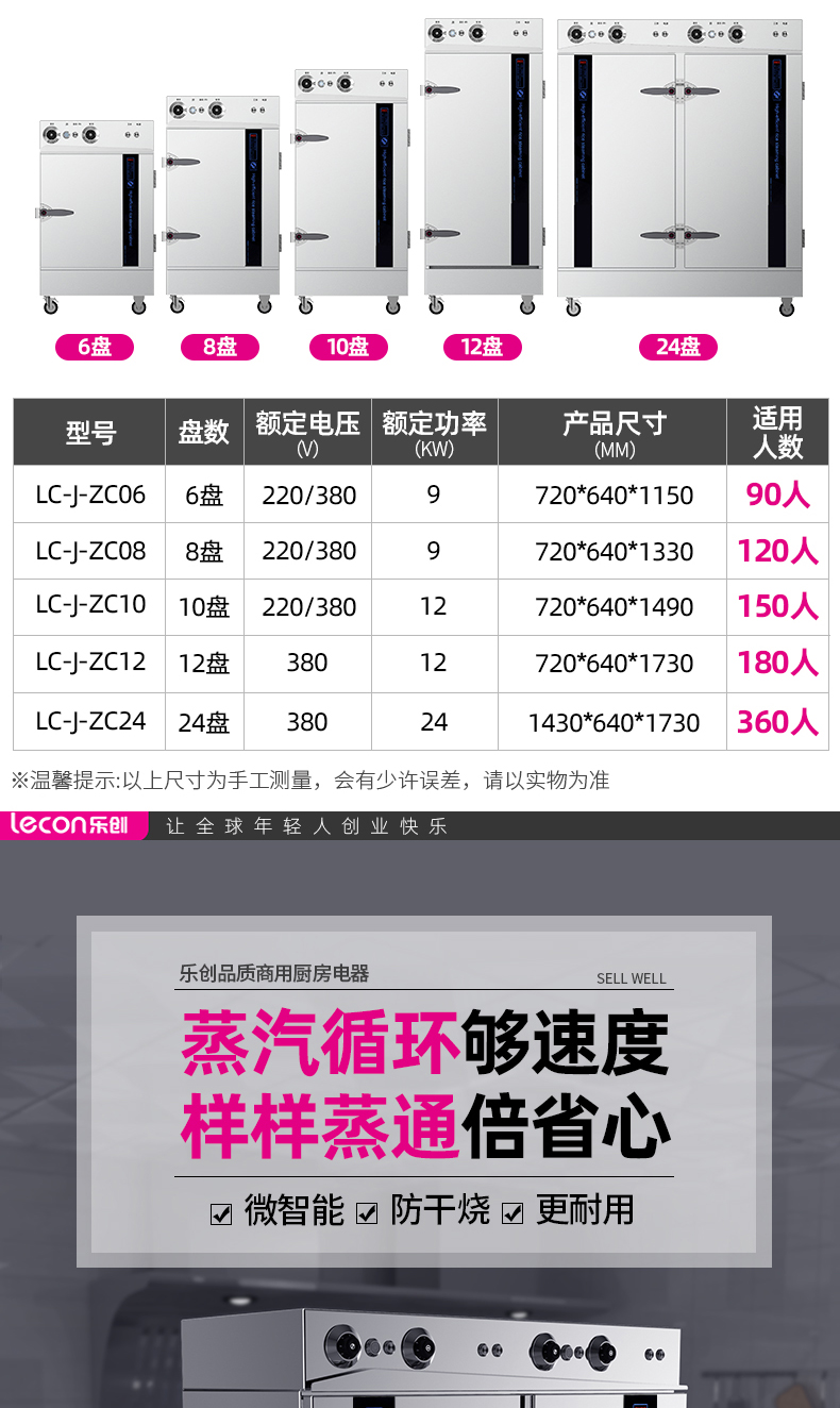 商品名称:乐创(lecon) 商用蒸饭柜 24盘普通机械款大型蒸饭车 LC-J-ZC24 不锈钢色