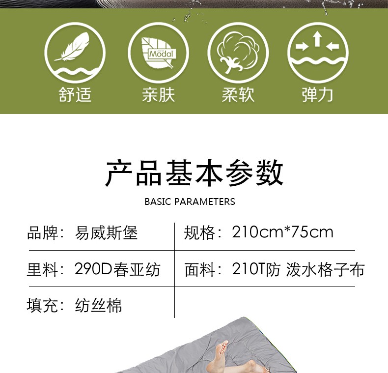 商品名称:易威斯堡(EasySport)豪华四季睡袋 ES-SD001 混色