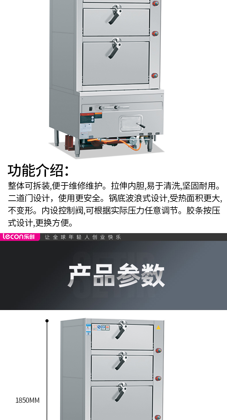 商品名称:乐创( lecon) 商用海鲜蒸柜 1.2米食堂酒店三门蒸柜 鼓风型 LC-J-GCKB12 不锈钢色