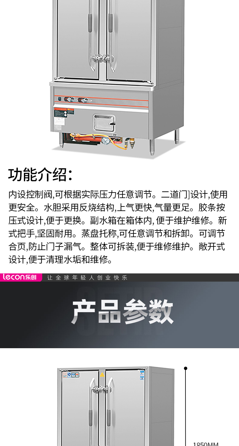 商品名称:乐创( lecon) 商用海鲜蒸柜 食堂酒店双门鼓风型蒸柜 工程款 LC-J-SMA01 不锈钢色