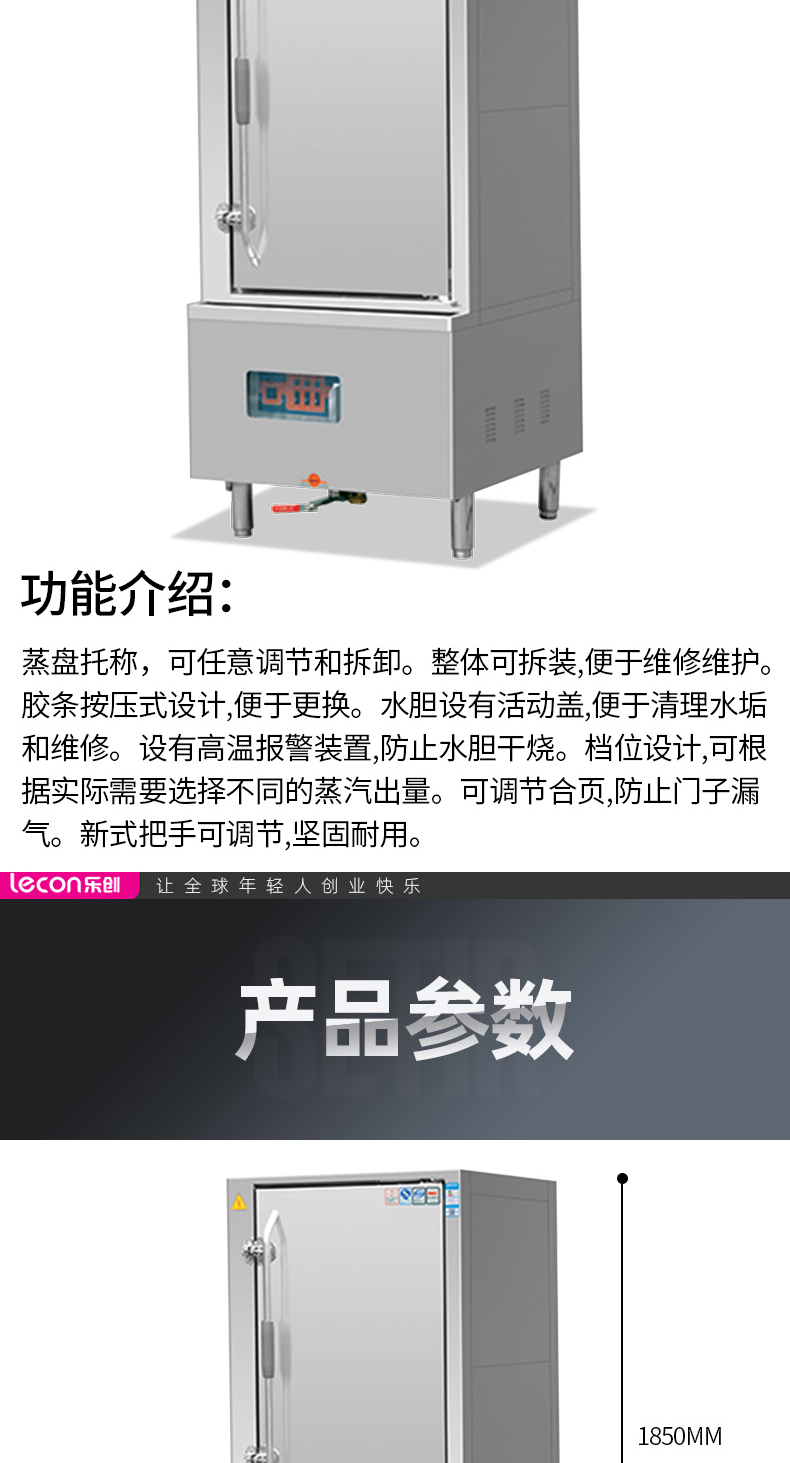 商品名称:乐创( lecon) 商用海鲜蒸柜 食堂酒店单门电热蒸柜 工程款 LC-J-SX24AD 不锈钢色
