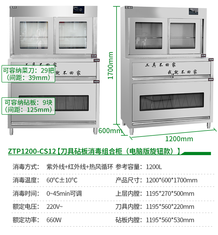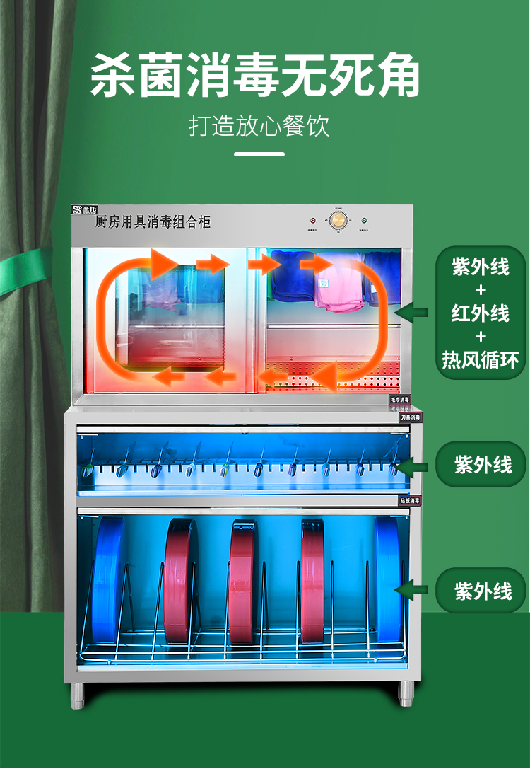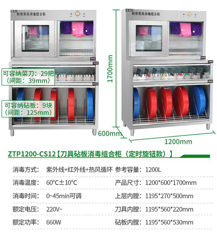 商品名称:圣托(Shentop)厨房菜刀砧板消毒柜 紫外线毛巾刀具消毒柜商用 4D厨房组合消毒柜 ZTP1200-CS12 不锈钢色