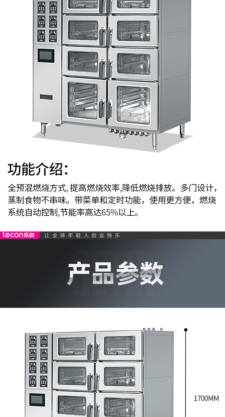 商品名称:乐创( lecon) 商用多门蒸柜 食堂酒店智能燃气八门蒸柜 玻璃智能款 LC-J-ZNBM 不锈钢色