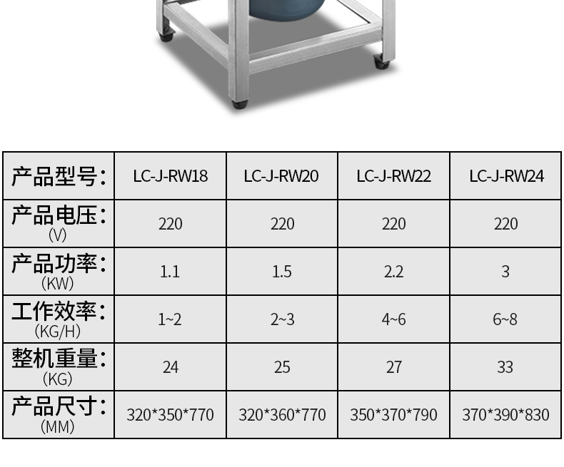 商品名称:乐创(lecon) 商用肉丸打浆机 搅拌机肉泥机6KG/H LC-J-RW22 银色
