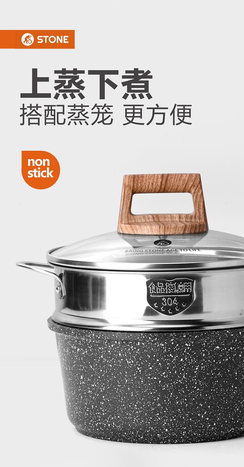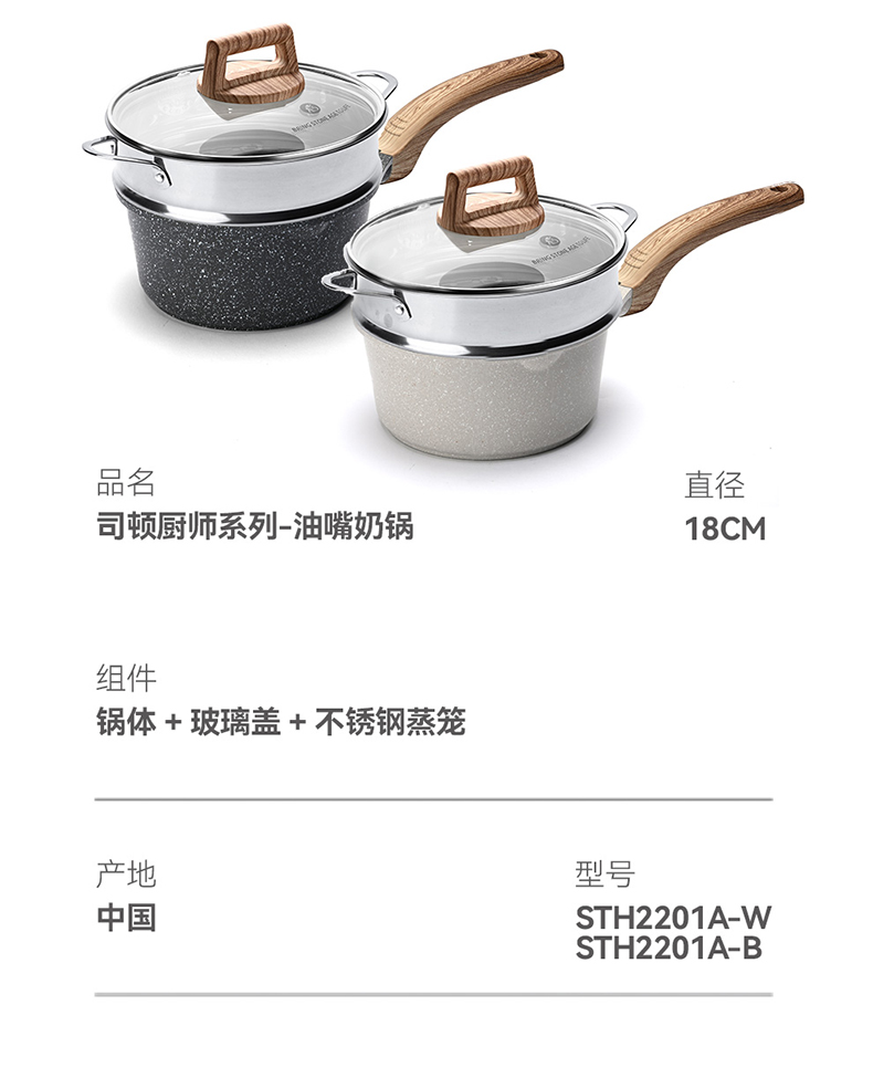 商品名称:司顿18油嘴奶锅+不锈钢蒸格+20油嘴煎盘(无盖)(单位:套) 米白色STH2201A-C2