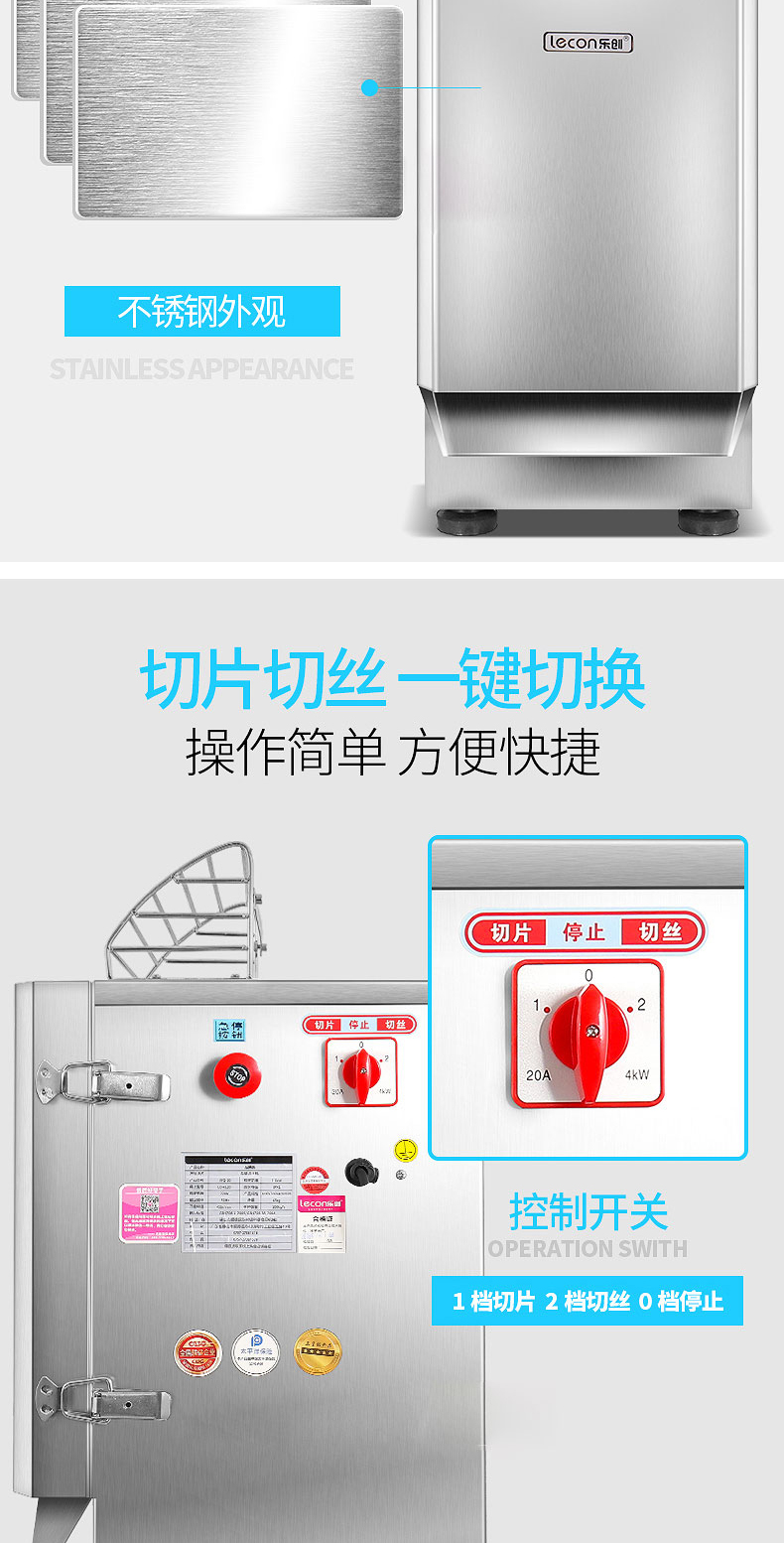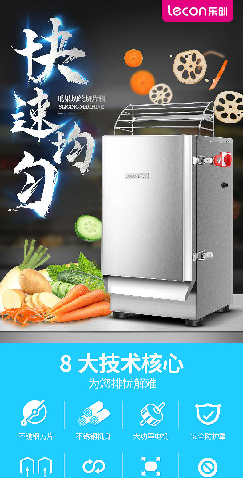 商品名称:乐创(lecon) 商用切片切丝机 电动多功能瓜果刨丝机 LC-J-YF20 银色