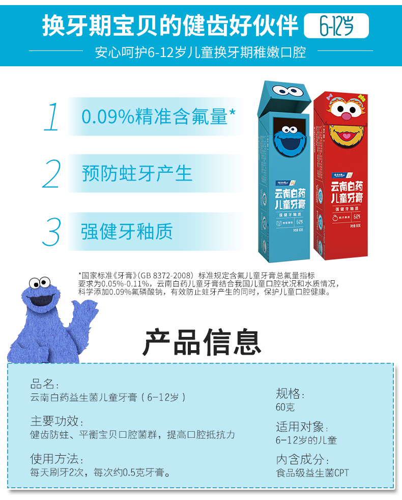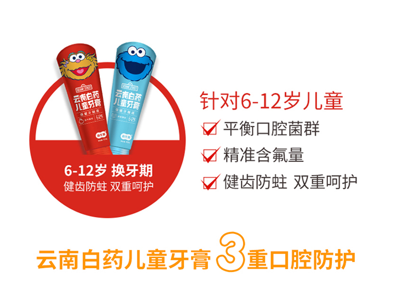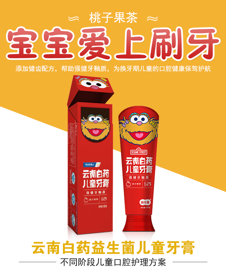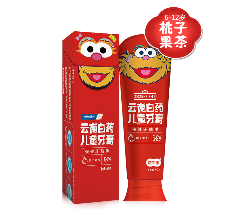商品名称:云南白药儿童牙膏 益生菌 桃子果茶 60g 红色