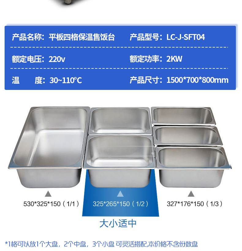 商品名称:乐创(lecon)商用平板保温售饭台 四格不锈钢恒温车 LC-J-SFT04 银色