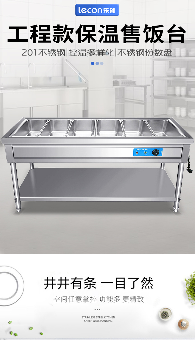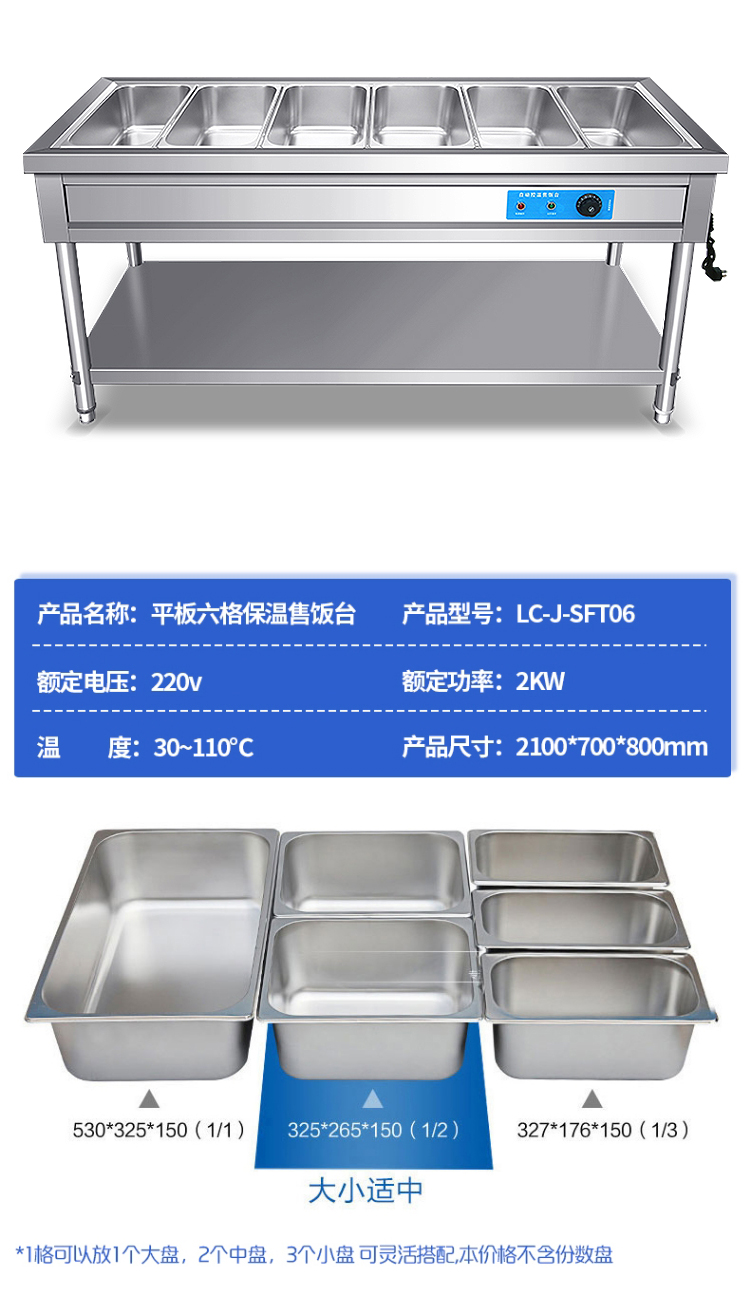 商品名称:乐创(lecon)商用平板保温售饭台 六格不锈钢恒温车 LC-J-SFT06 银色