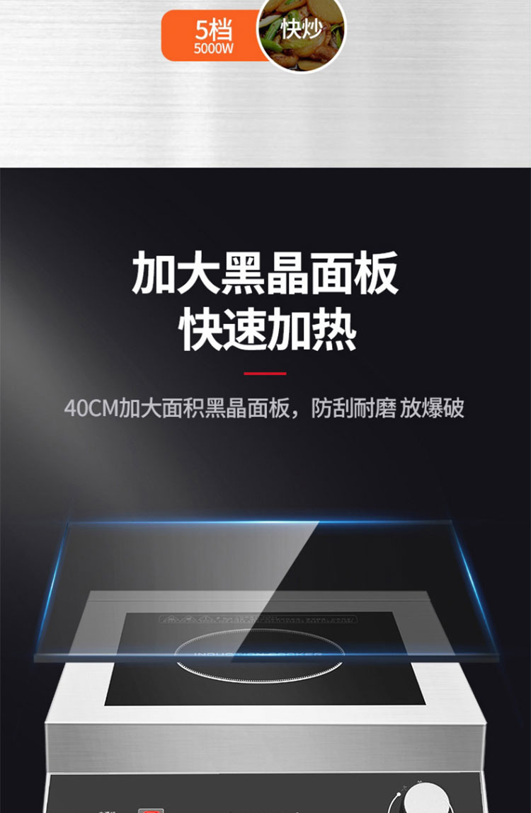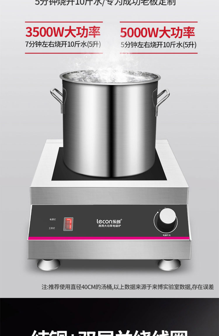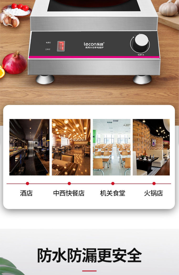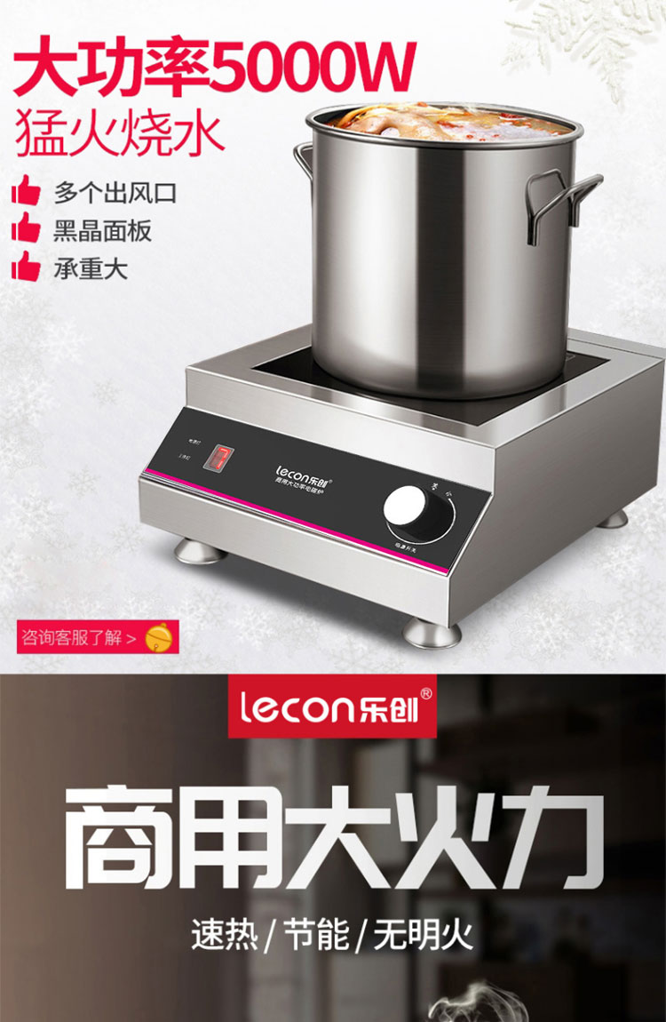 商品名称:乐创(lecon)商用电磁炉5000W 商业电磁灶电炉灶五千瓦大功率炒炉大锅灶食堂炒菜用平面 LC-SY5001 银色