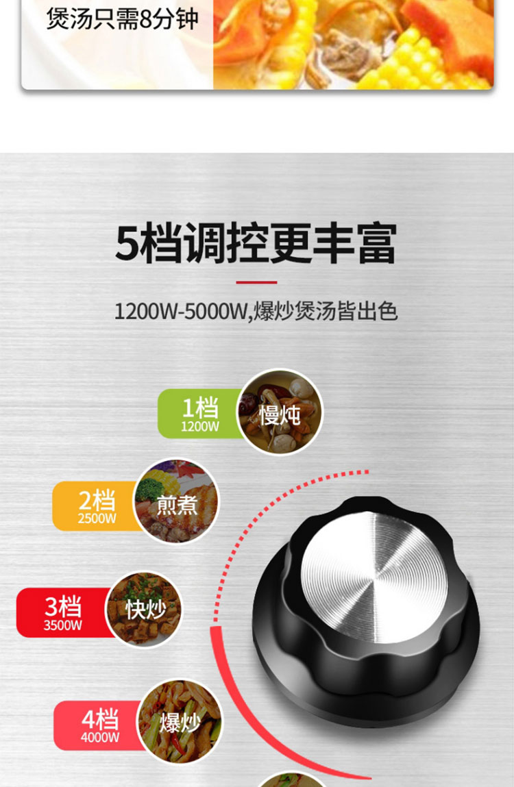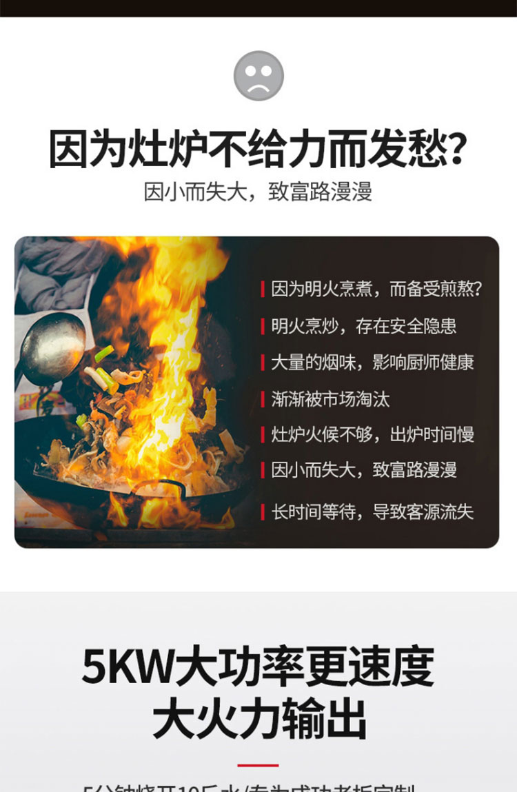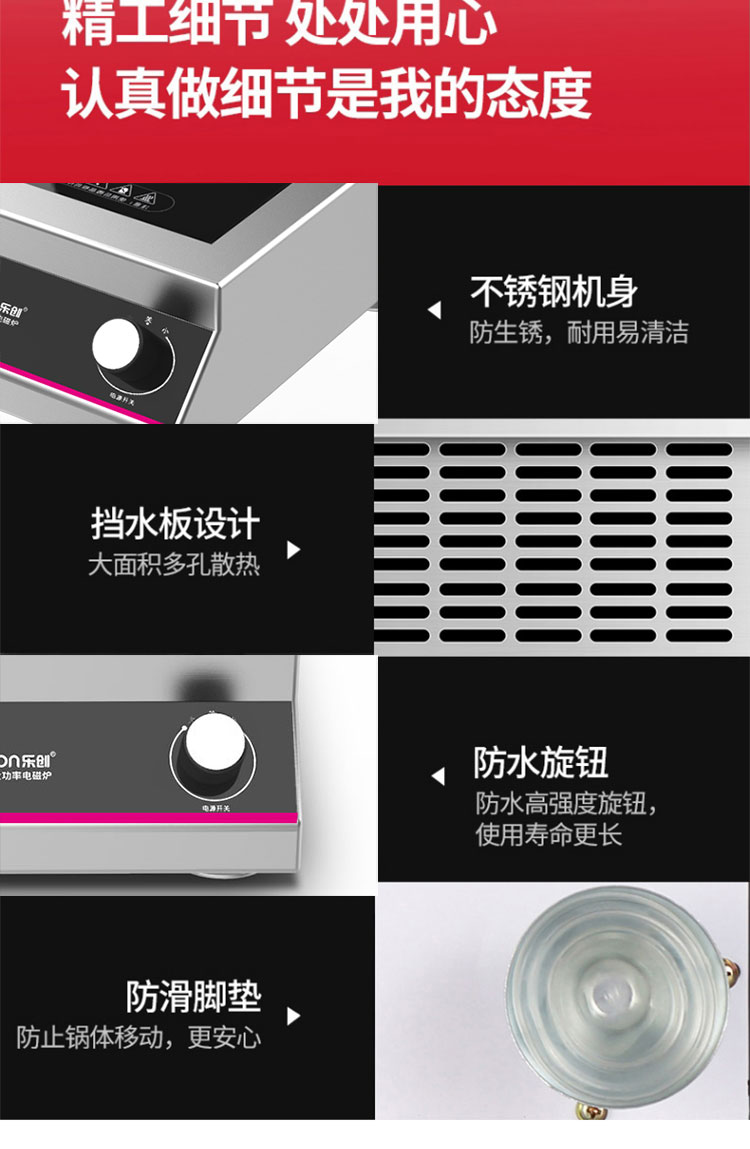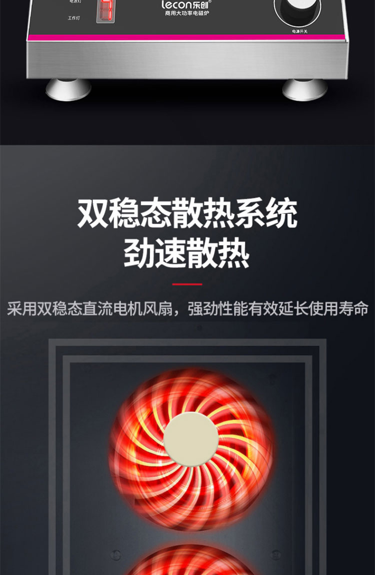 商品名称:乐创(lecon)商用电磁炉5000W 商业电磁灶电炉灶五千瓦大功率炒炉大锅灶食堂炒菜用平面 LC-SY5001 银色