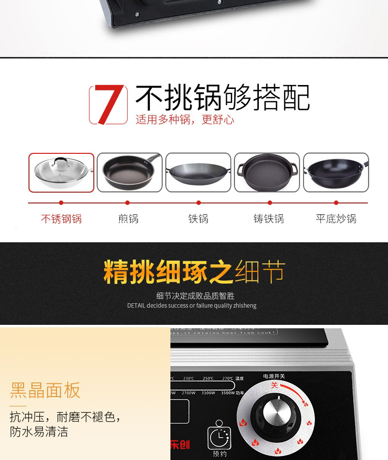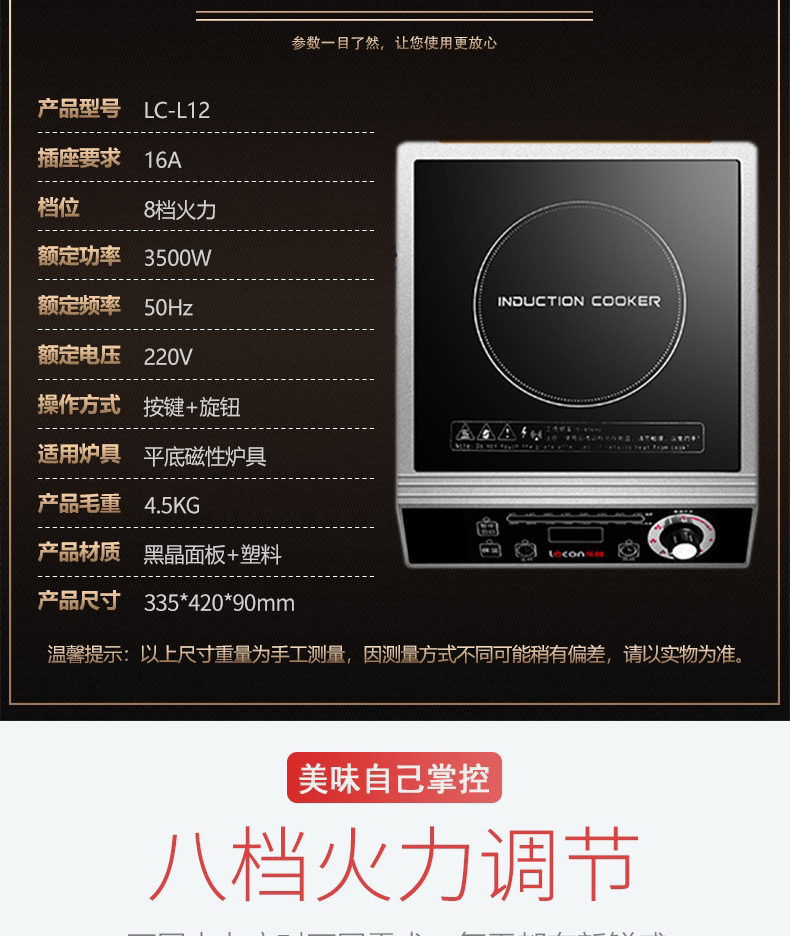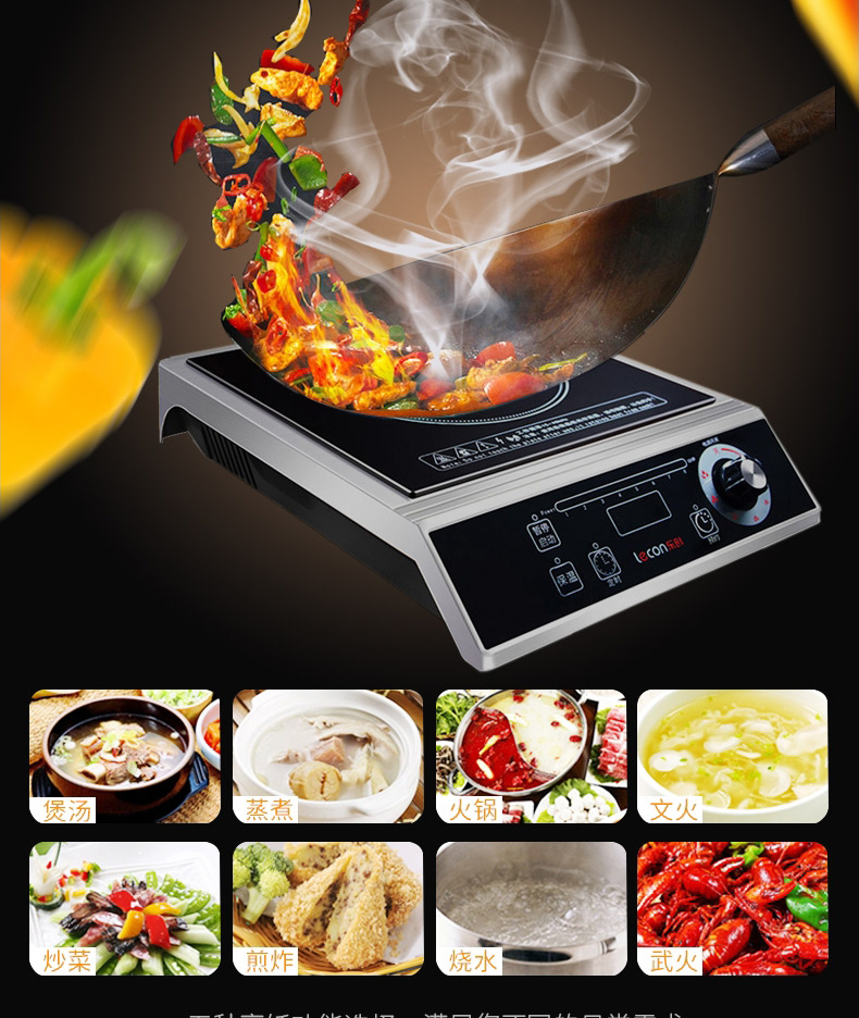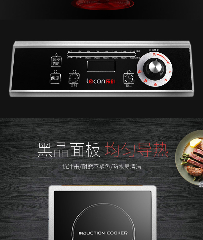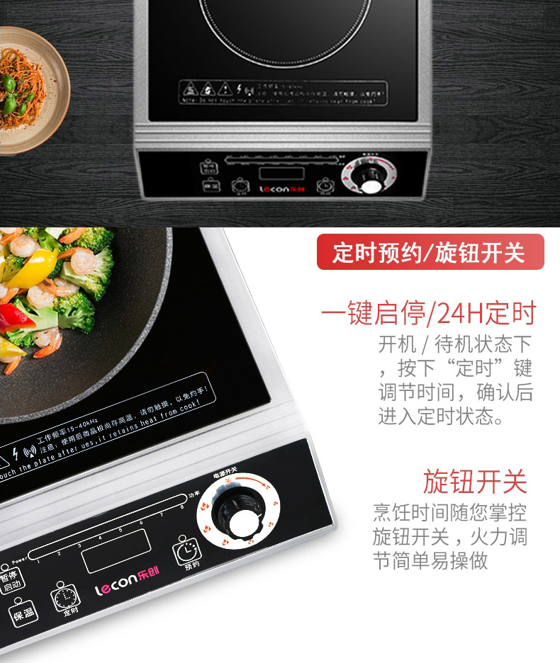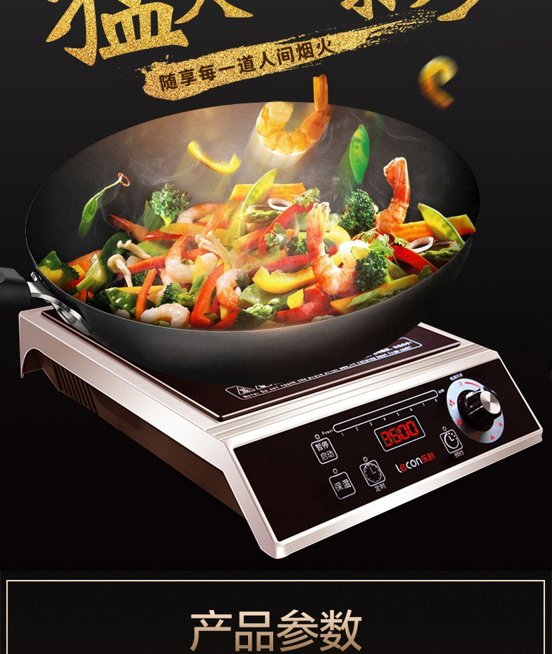 商品名称:乐创(lecon)商用电磁炉3500W大功率 平面不锈钢电磁灶 食堂餐厅酒店大火力电池炉 LC-L12 银色