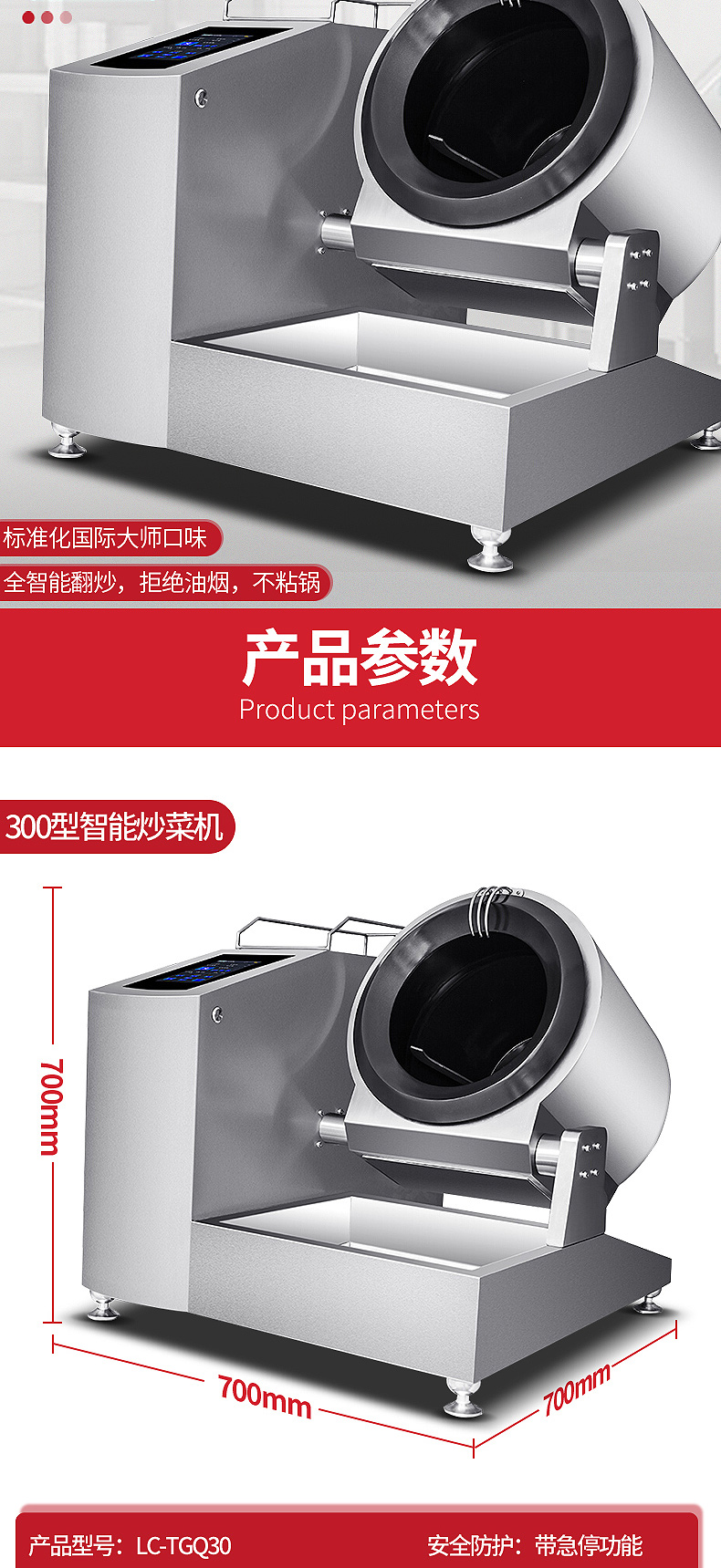 商品名称:乐创 lecon台式智能触屏炒菜机大容量全自动智能炒菜机器人饭堂食堂炒菜烹饪机 LC-TGQ30 银色