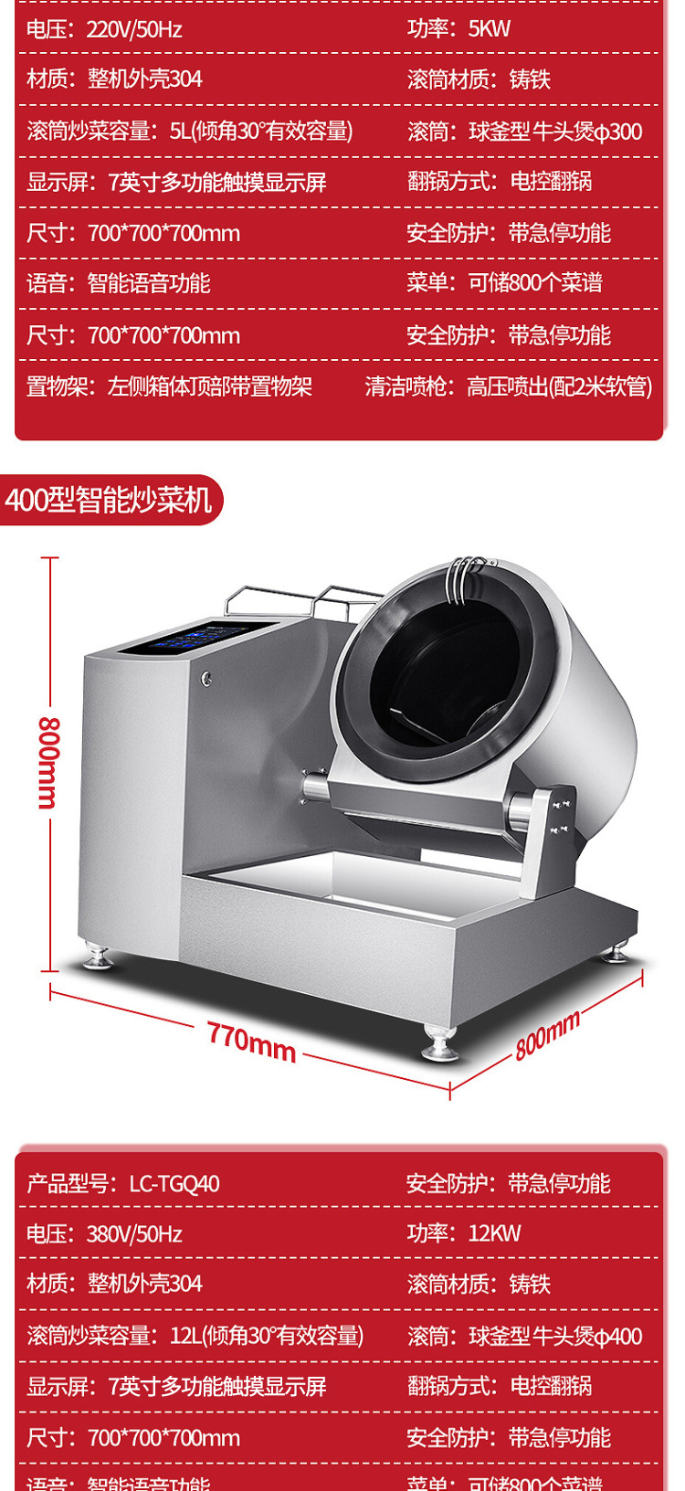 商品名称:乐创(lecon)智能触屏炒菜机大容量全自动智能炒菜机器人饭堂食堂炒菜烹饪机 LC-TGQ40 银色