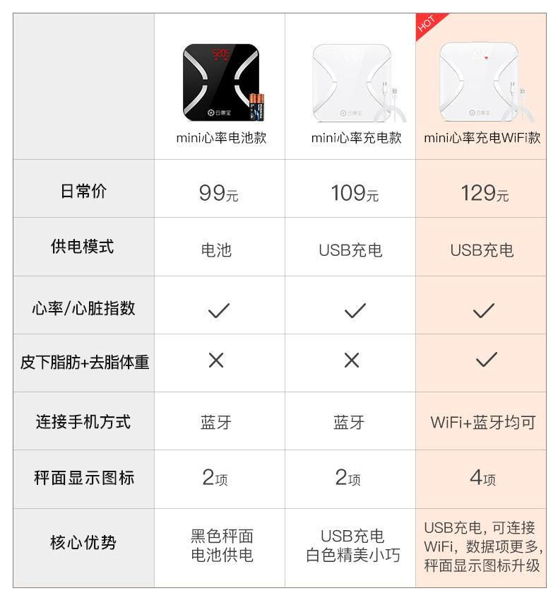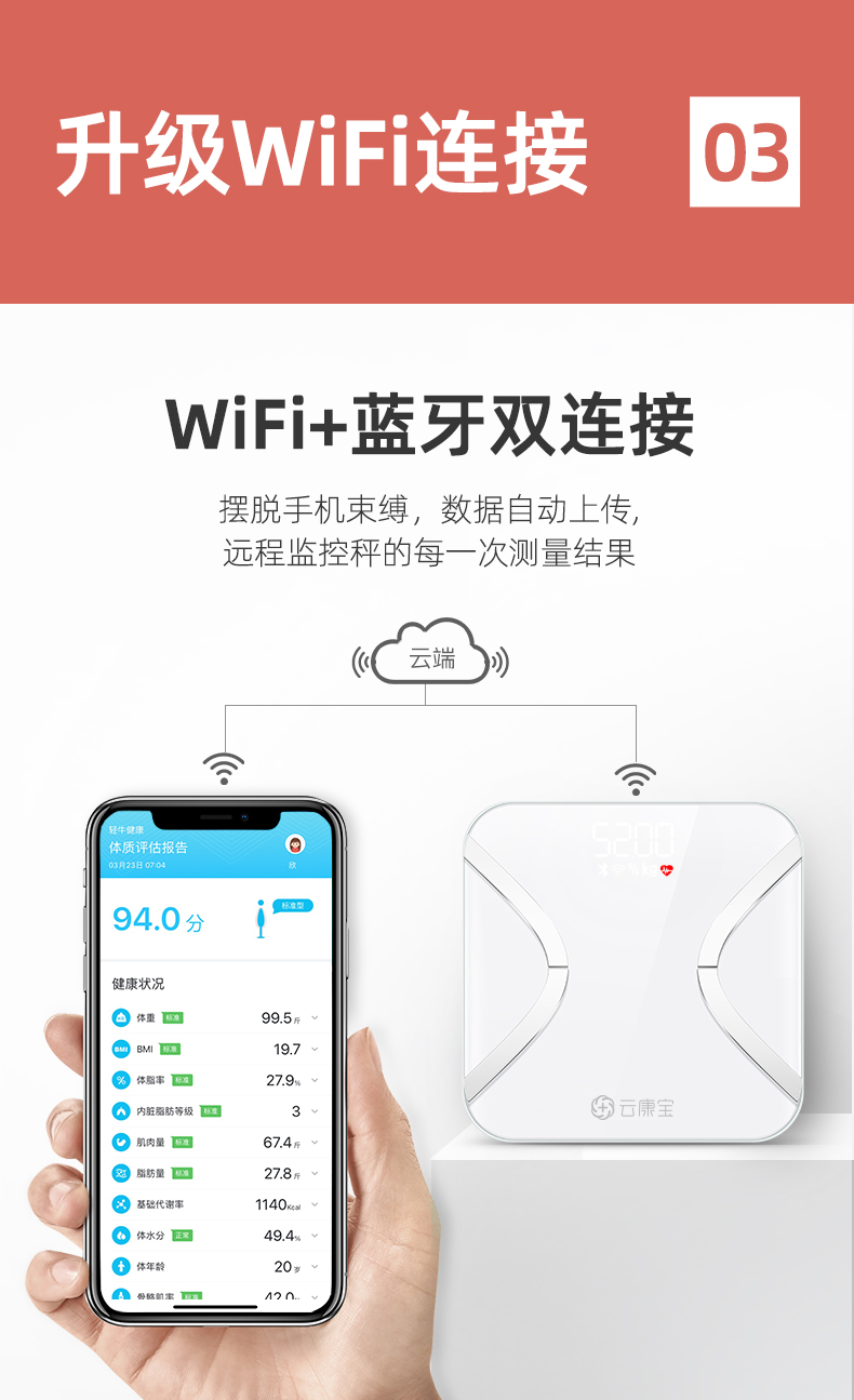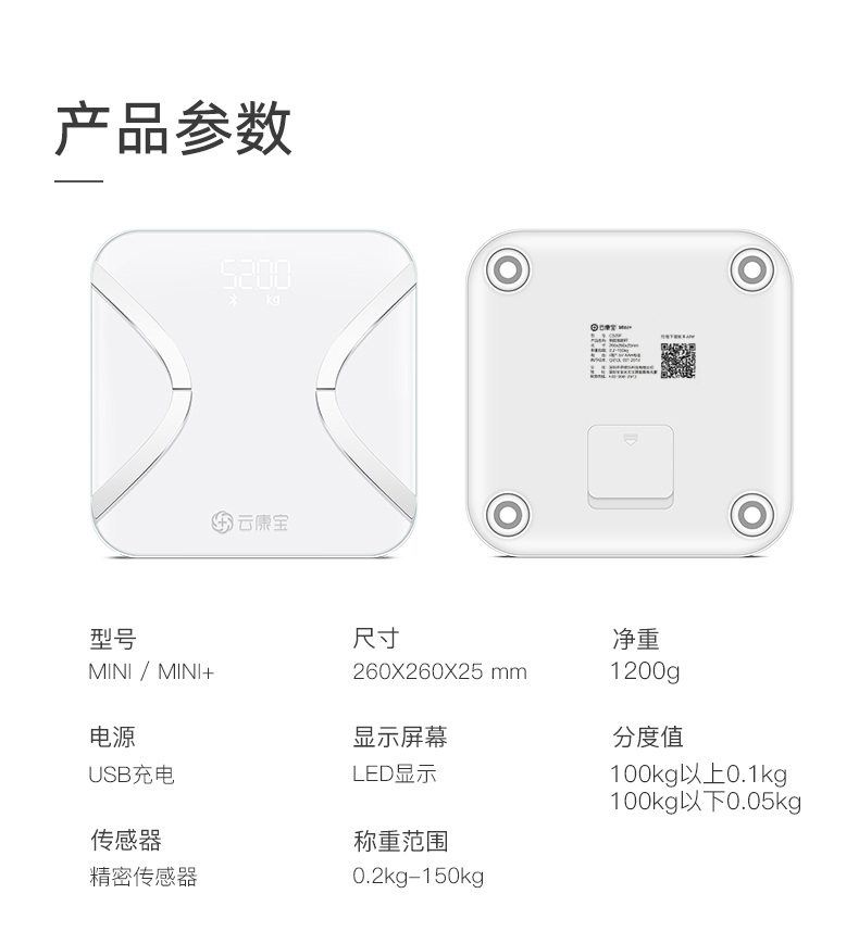 商品名称:云康宝mini智能体脂秤CS20E 白色-充电蓝牙WIFI款