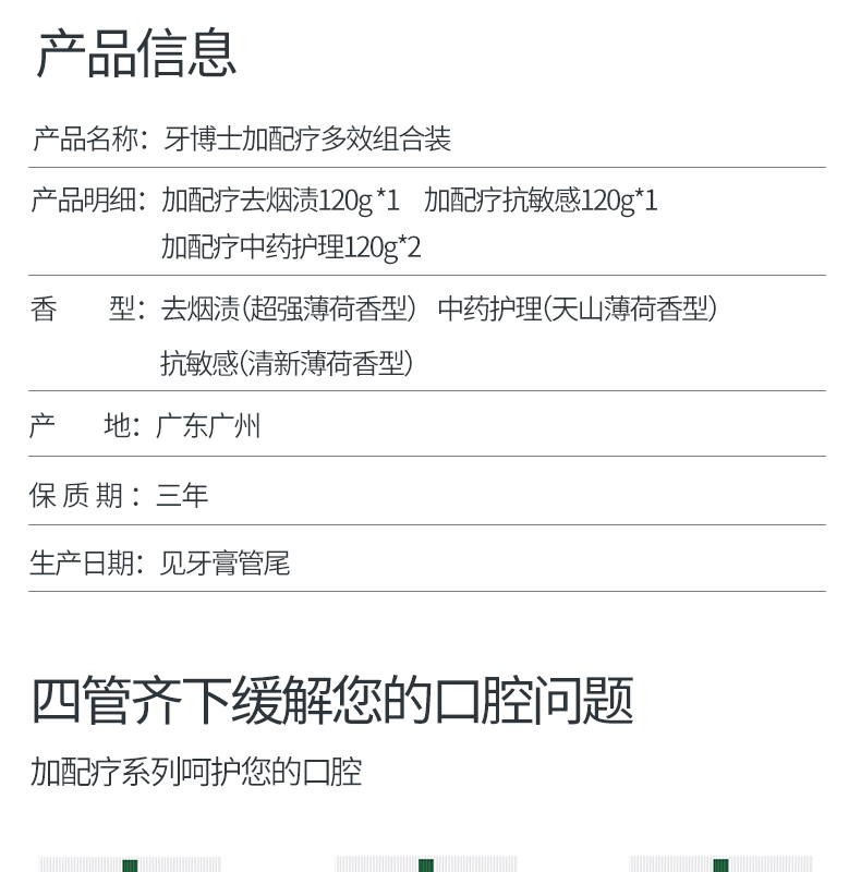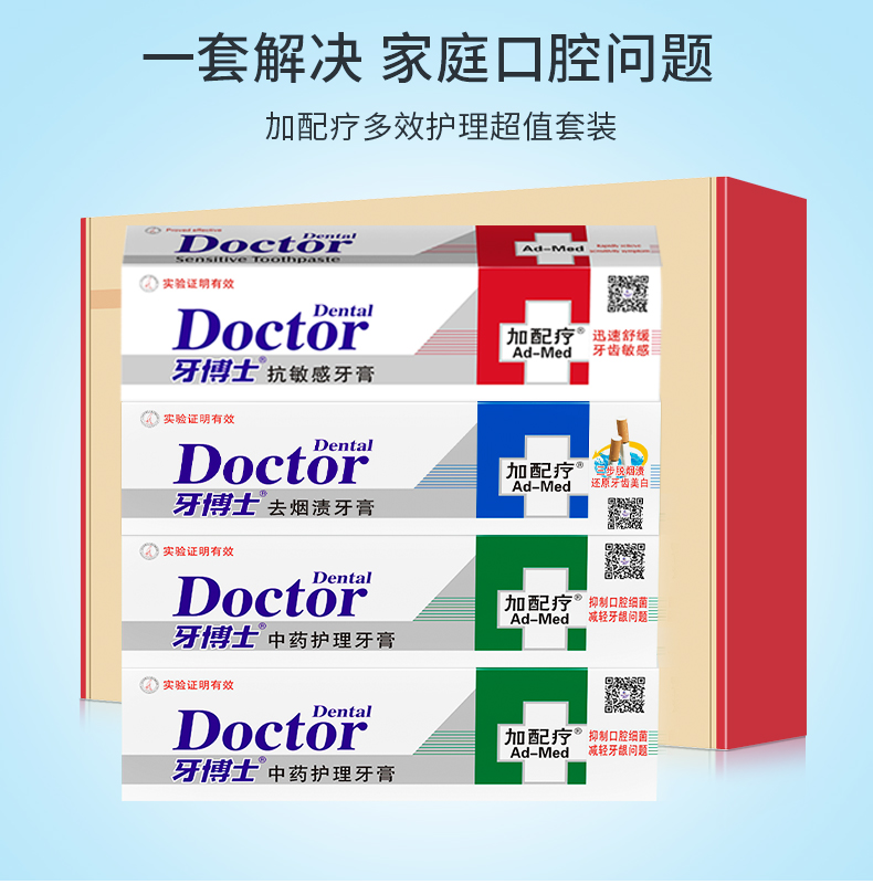 商品名称:牙博士 多效护理礼盒牙膏 120g*4支 抗敏感多效合一 混色(单位:套)