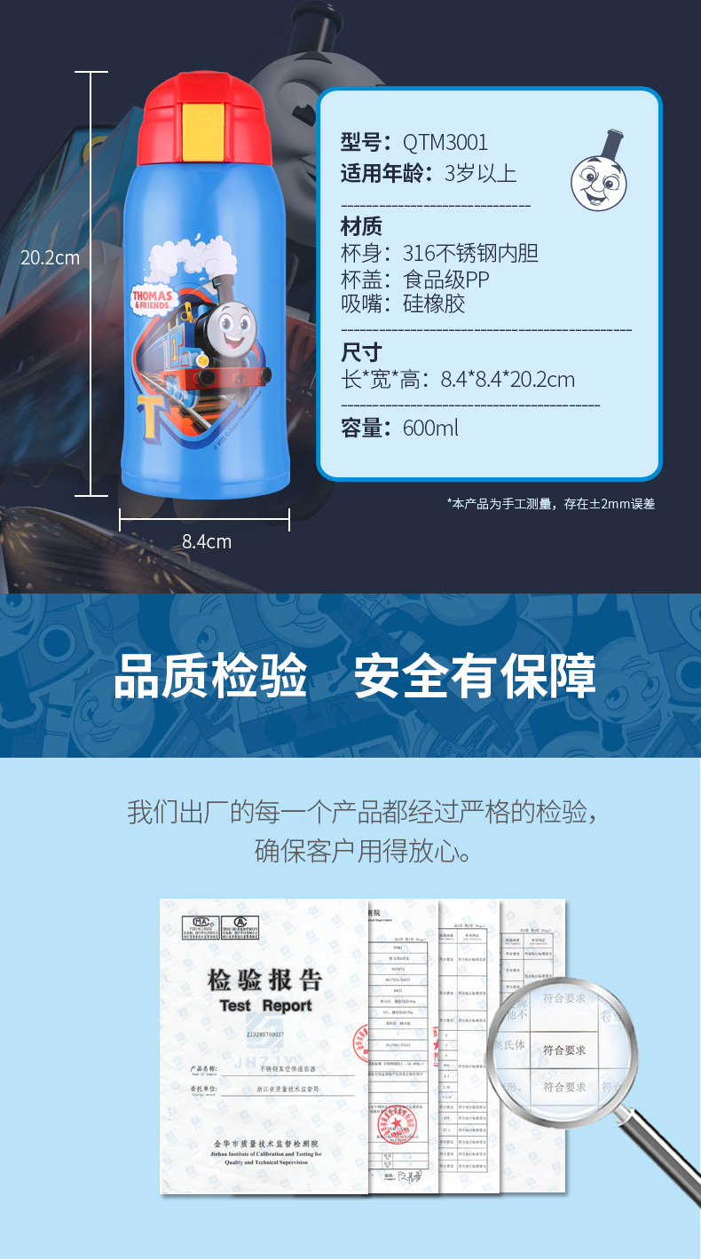 商品名称:托马斯和朋友 三盖儿童600ml保温壶 QTM3001(单位:个) 蓝色