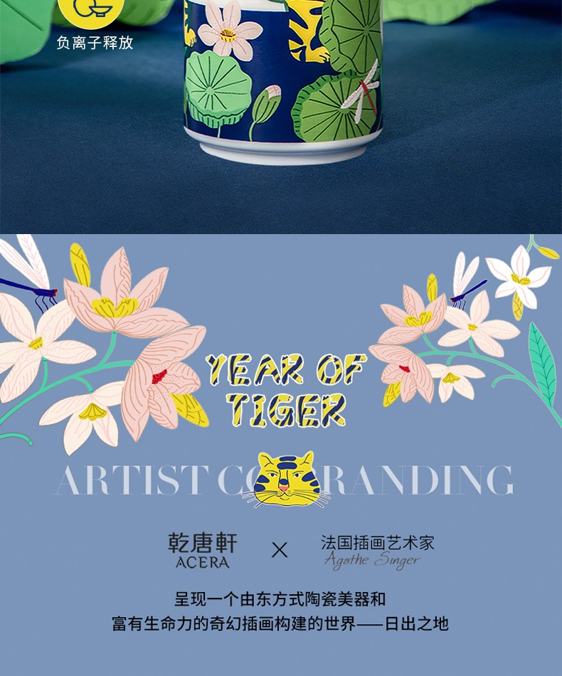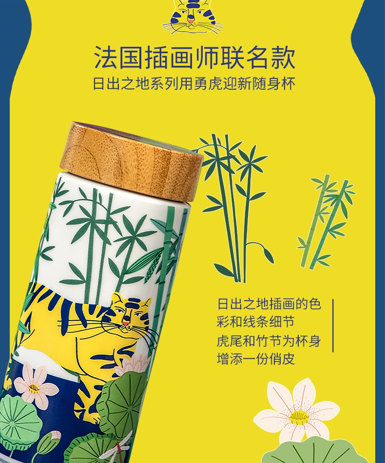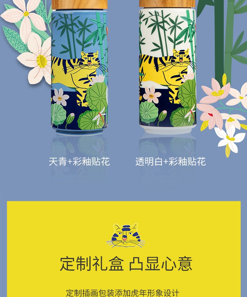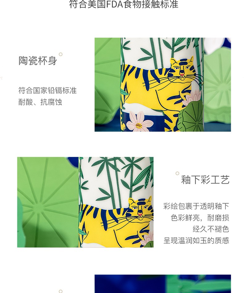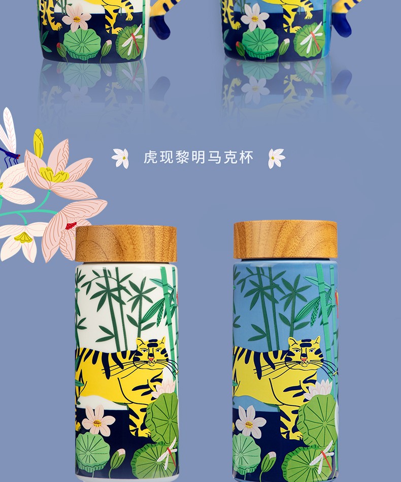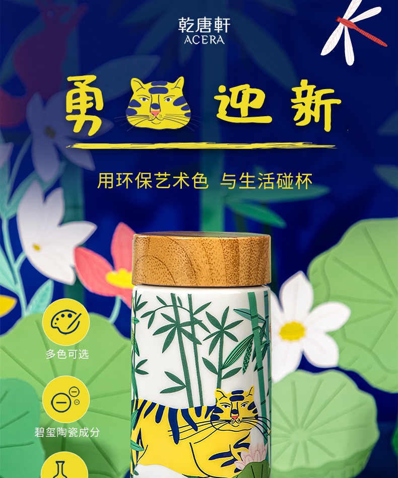 商品名称:乾唐轩 勇虎迎新随身杯(木纹盖)+虎现黎明马克杯礼盒 绿色