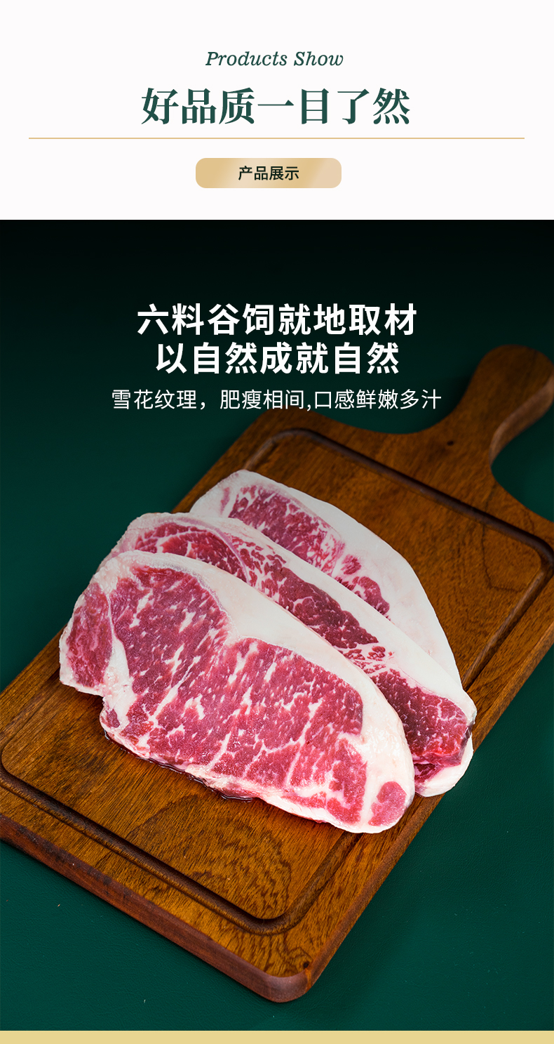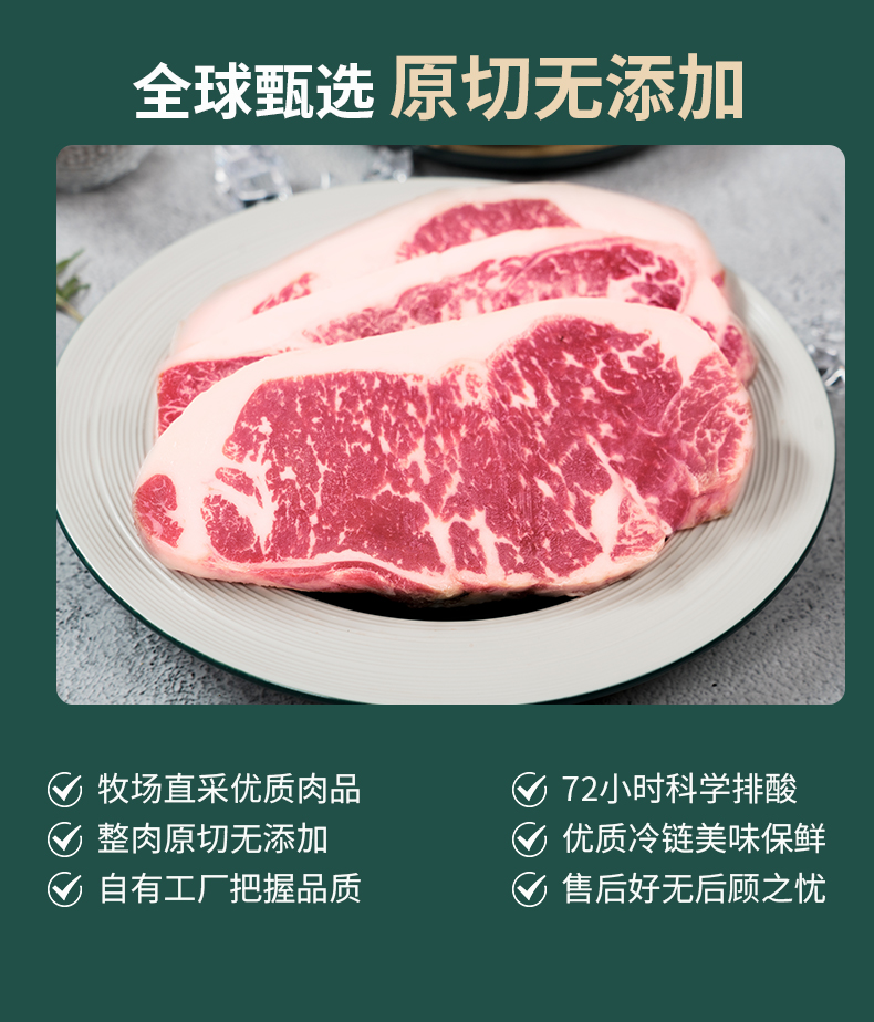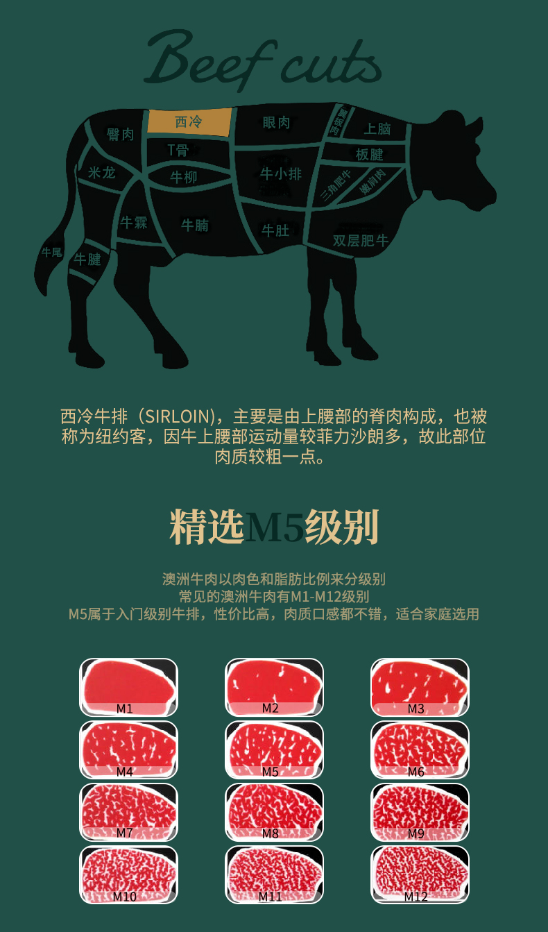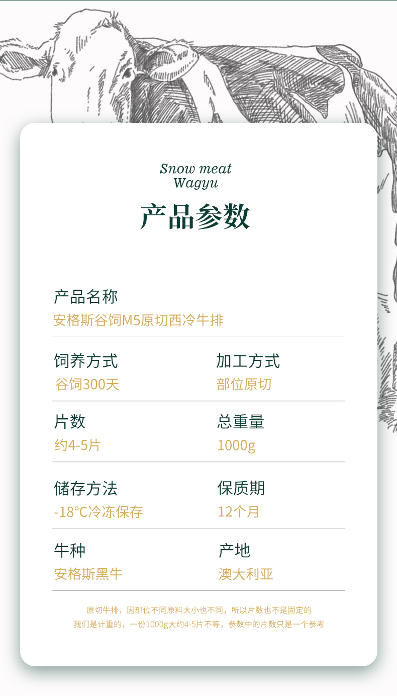 商品名称:景泰福安格斯原切M5+谷饲雪花西冷牛排1000G 单位:盒 白色