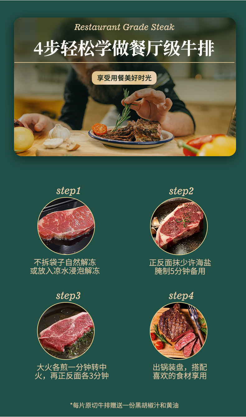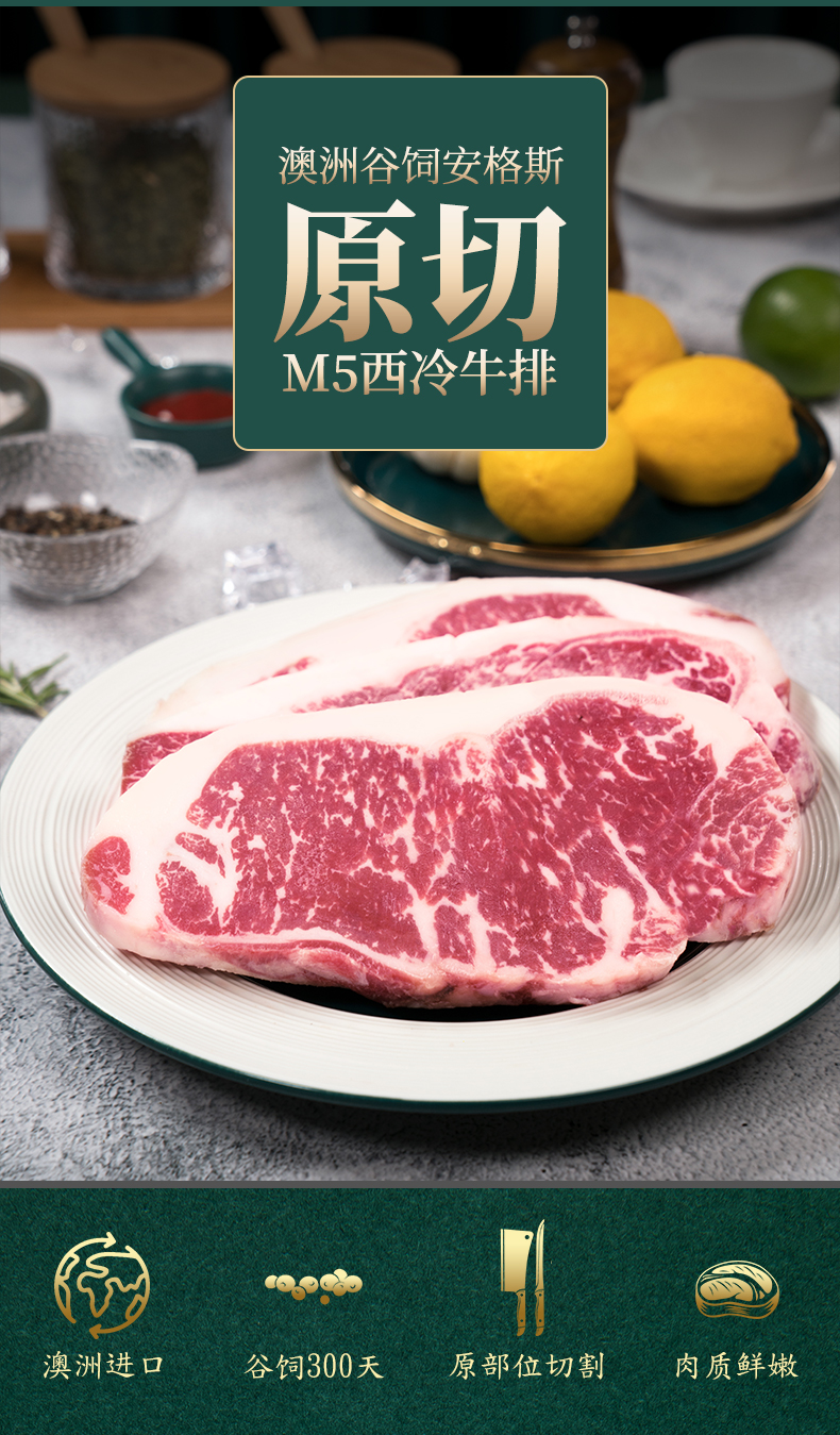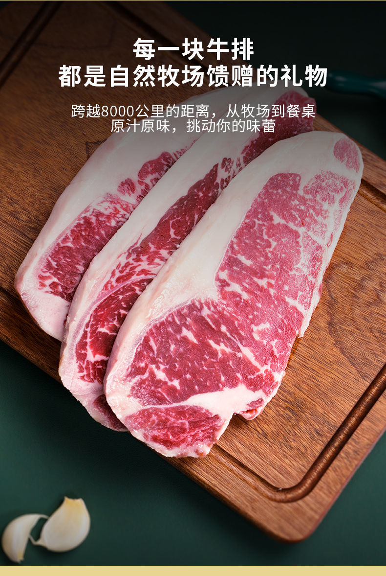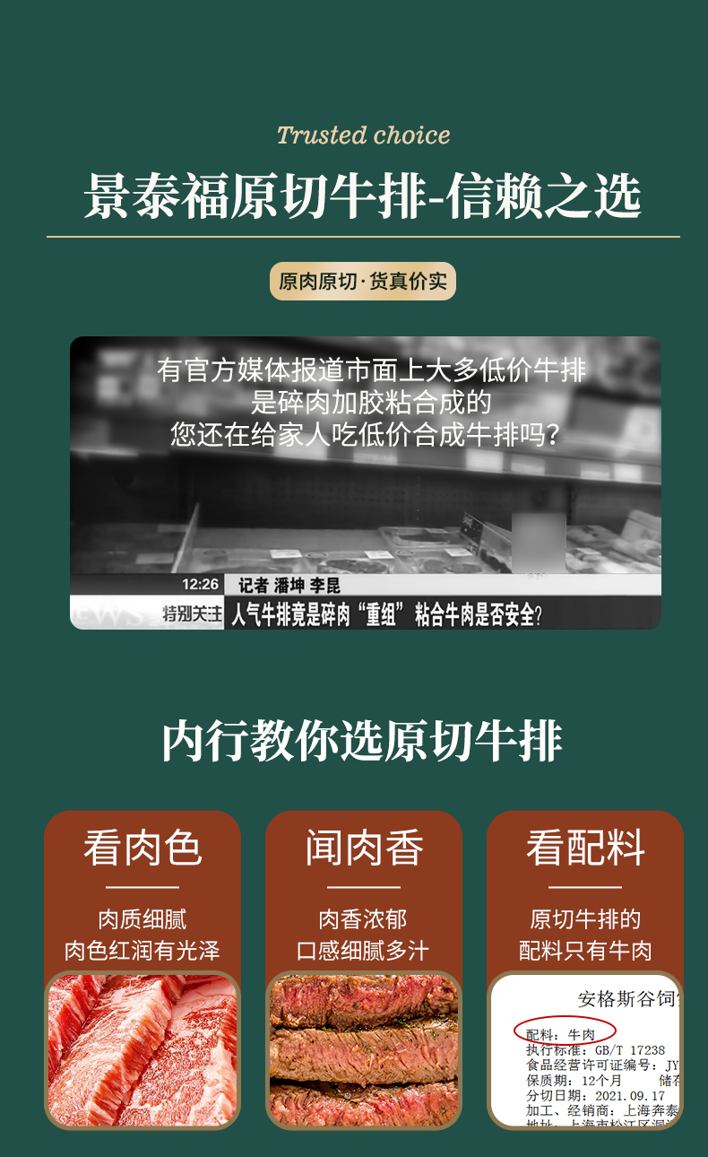 商品名称:景泰福安格斯原切M5+谷饲雪花西冷牛排1000G 单位:盒 白色
