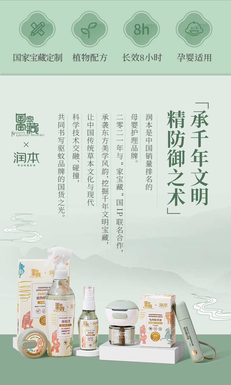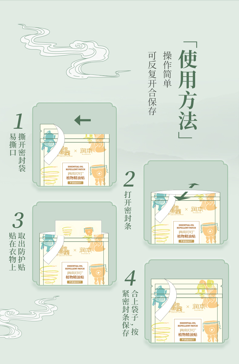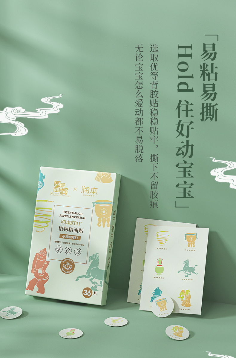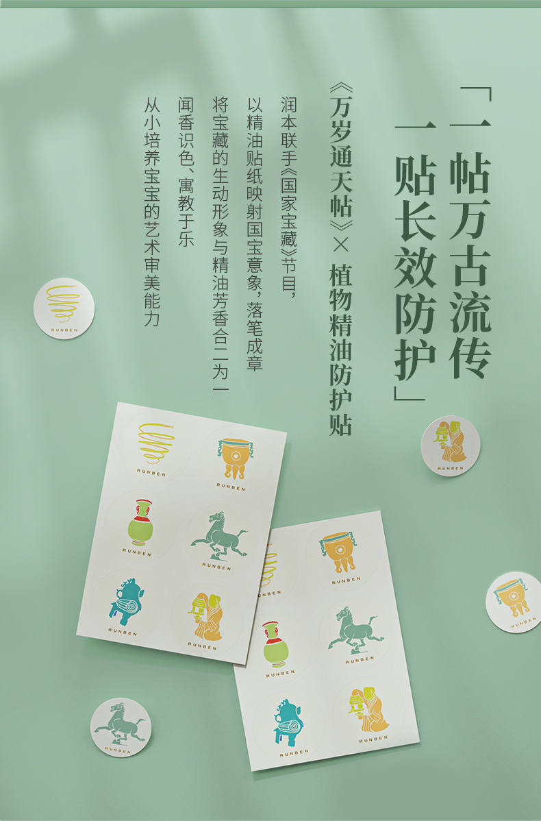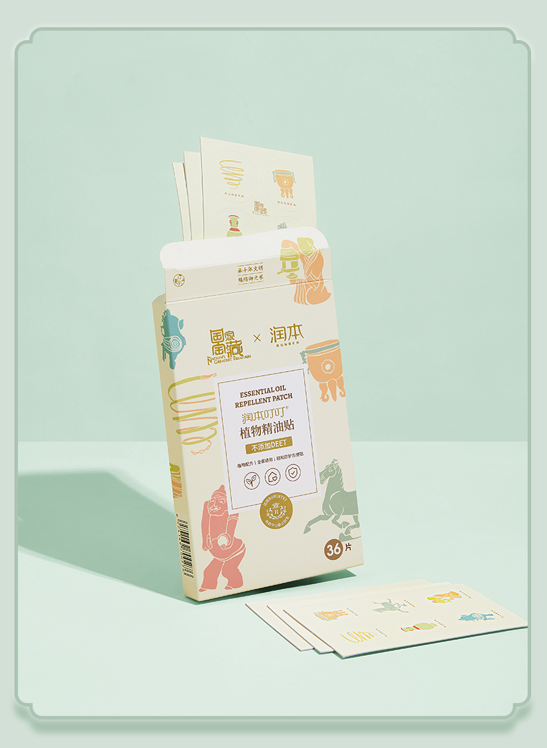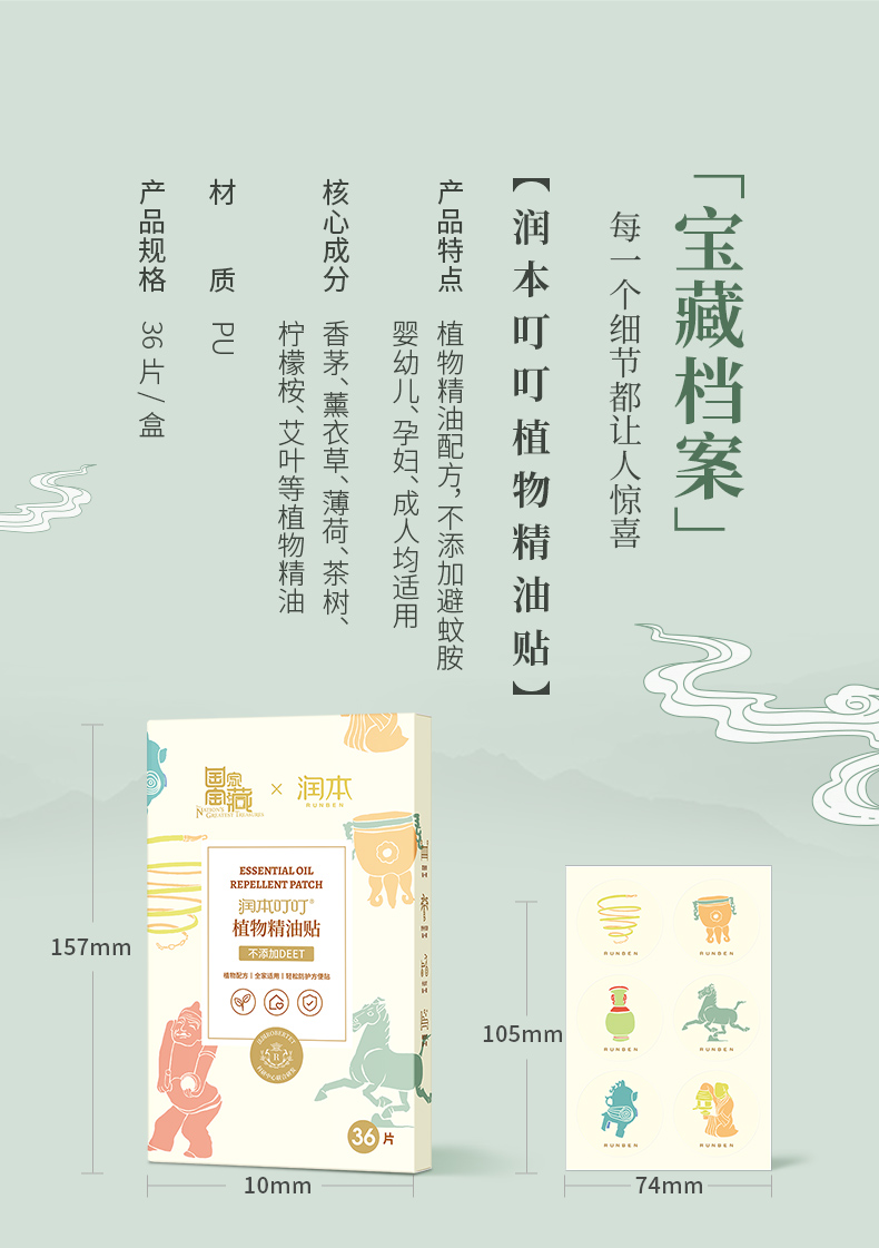 商品名称:润本叮叮植物精油贴 RUNBEN PU款(国家宝藏)36片装/盒 卡其色