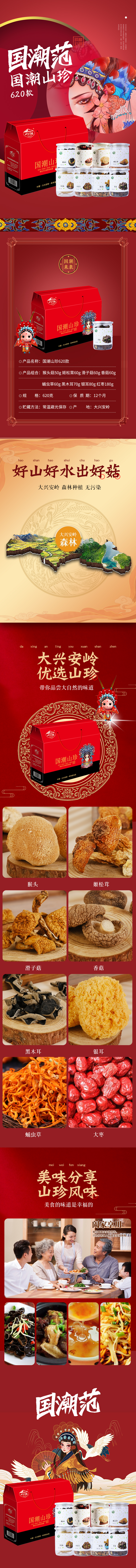 商品名称:岭味国潮山珍东北特产 菌类礼盒 送礼佳品620g 红色