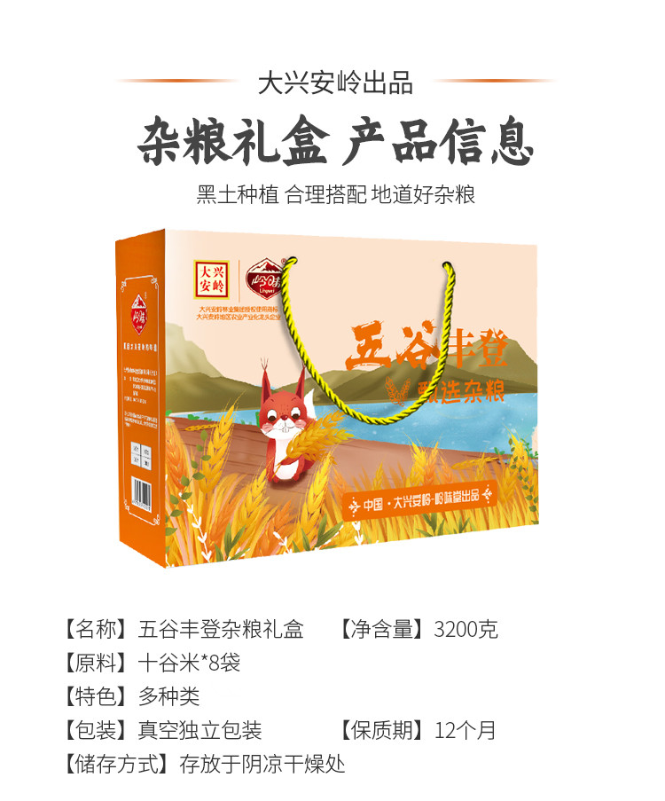 商品名称:岭味五谷丰登十谷米礼盒3200g 红色