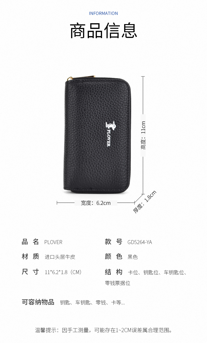 商品名称:PLOVER香港啄木鸟钥匙包 GD5264-YA " 黑色
