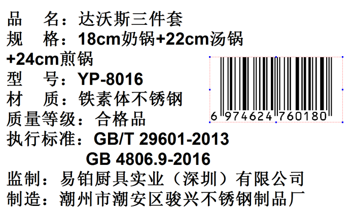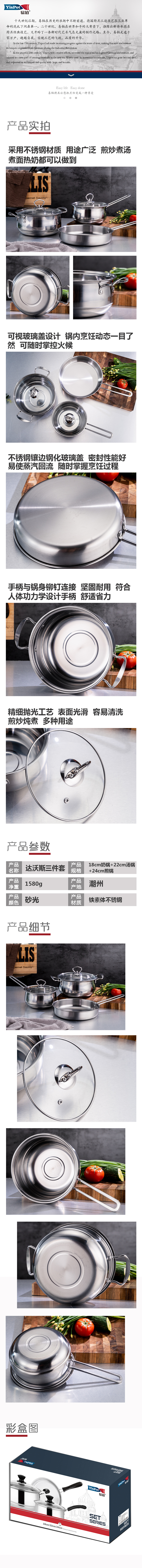 商品名称:【yispot易铂】达沃斯三件套锅YP-8016奶锅+汤锅+煎锅 不锈钢色