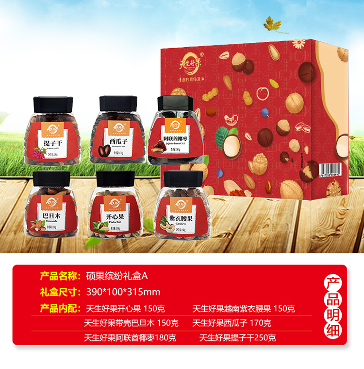 商品名称:天生好果坚果罐装中高端礼盒硕果缤纷1050款 硕果缤纷A礼盒
