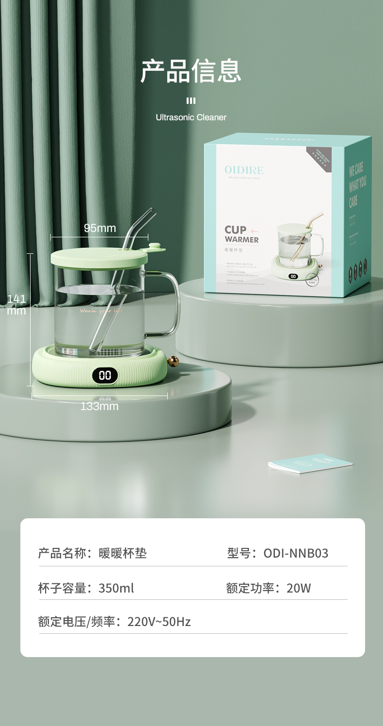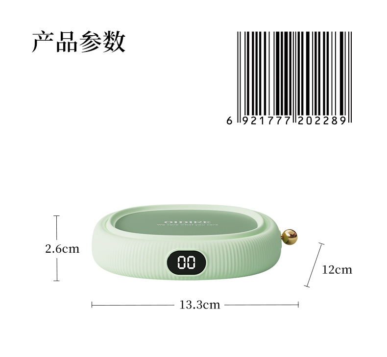 商品名称:OIDIRE ODI-NNB03(含水杯)数显款保温杯垫/暖杯垫绿色 清新色