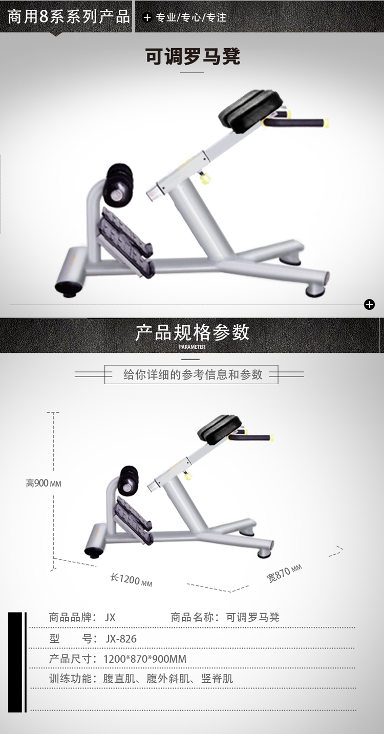 商品名称:军霞(JUNXIA)JX-826 可调罗马凳 黑色