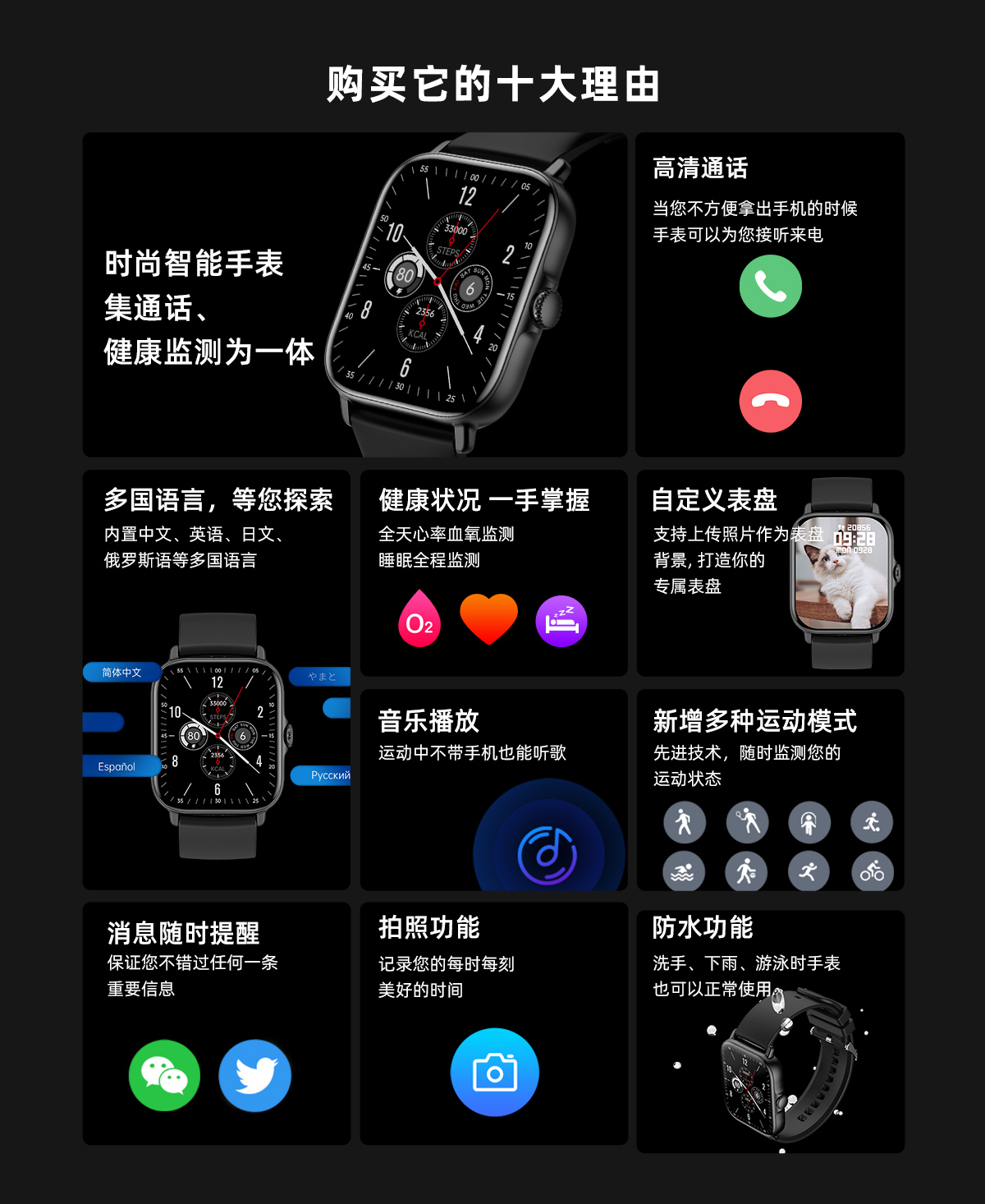 商品名称:WITMIND蓝牙通话智能手表T12 黑色